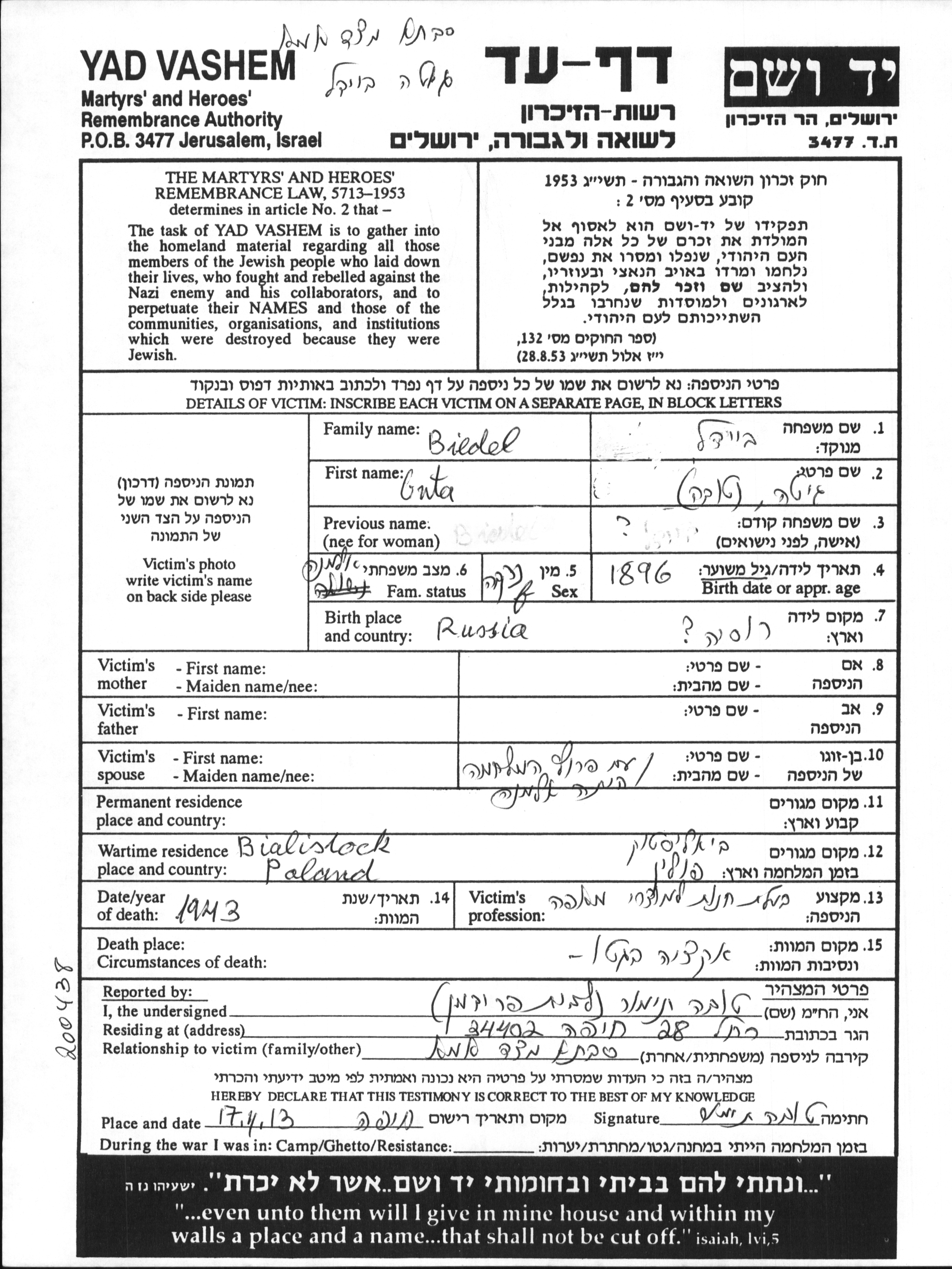 Бейдель Бидель | Това Гитель Ента | место не указано, | Личные документы |