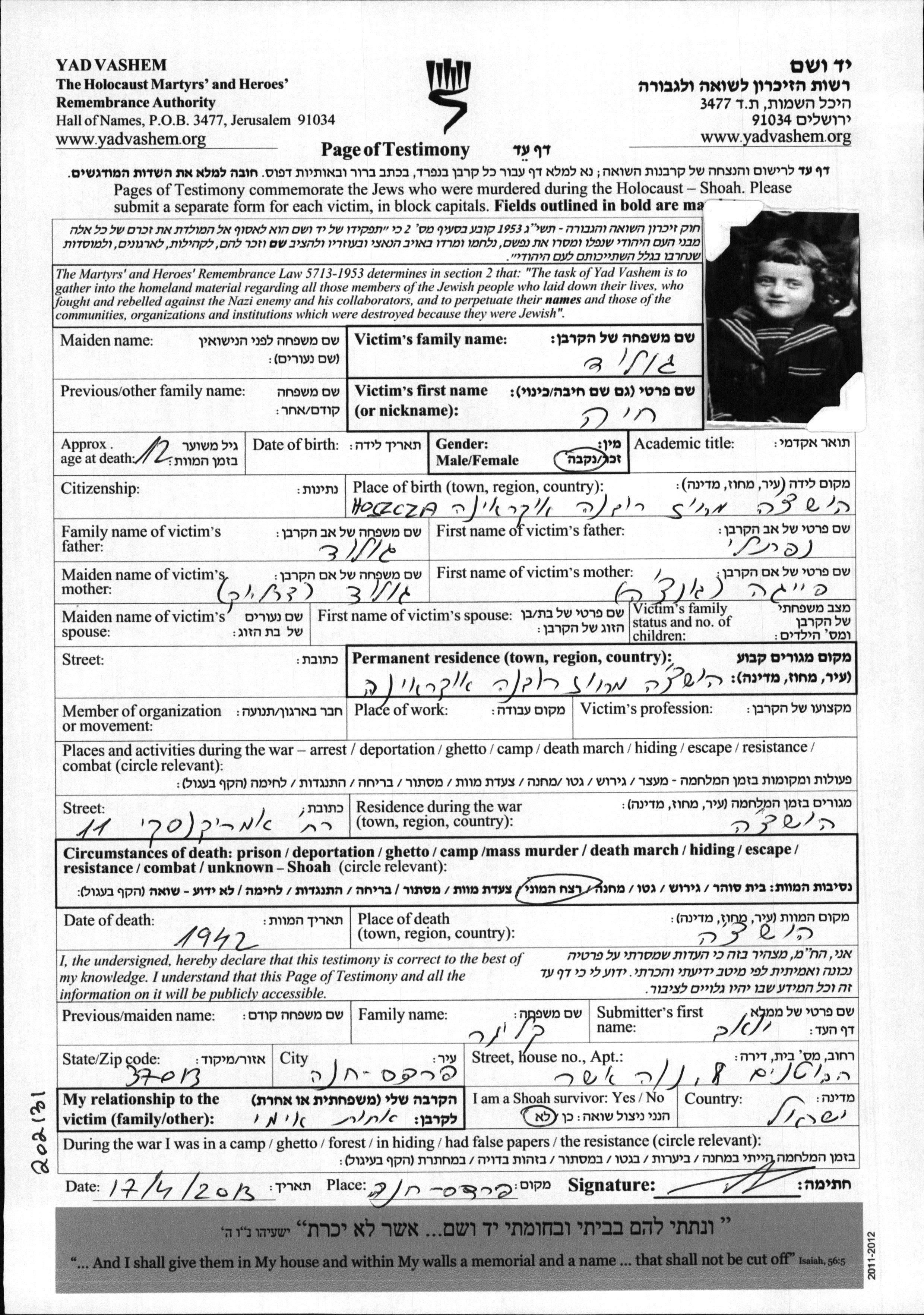 Яд Вашем - Листы свидетельских показаний Мемориального фонда