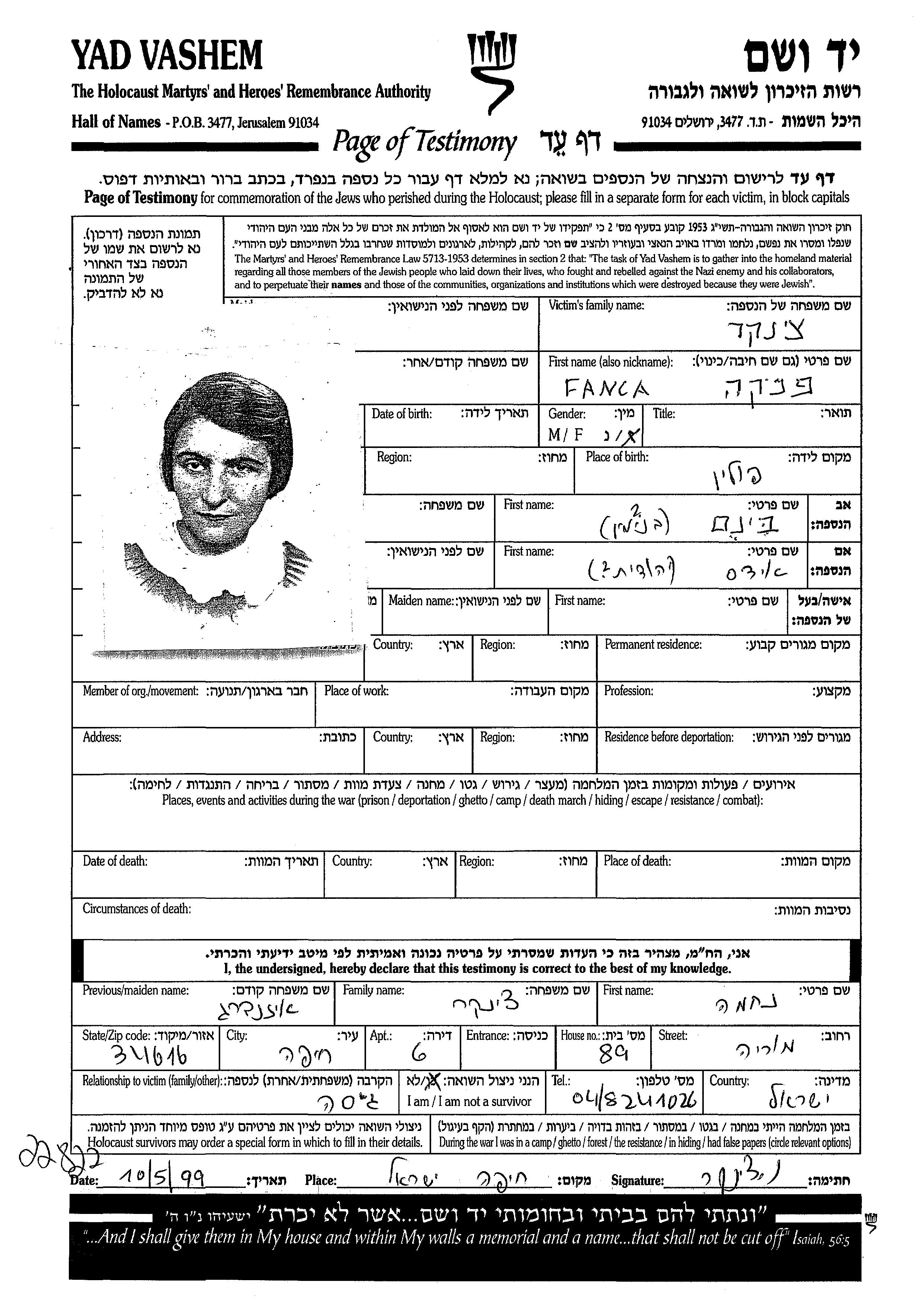 Фанка уничтоженa в период Шоа. место смерти: место не указано.