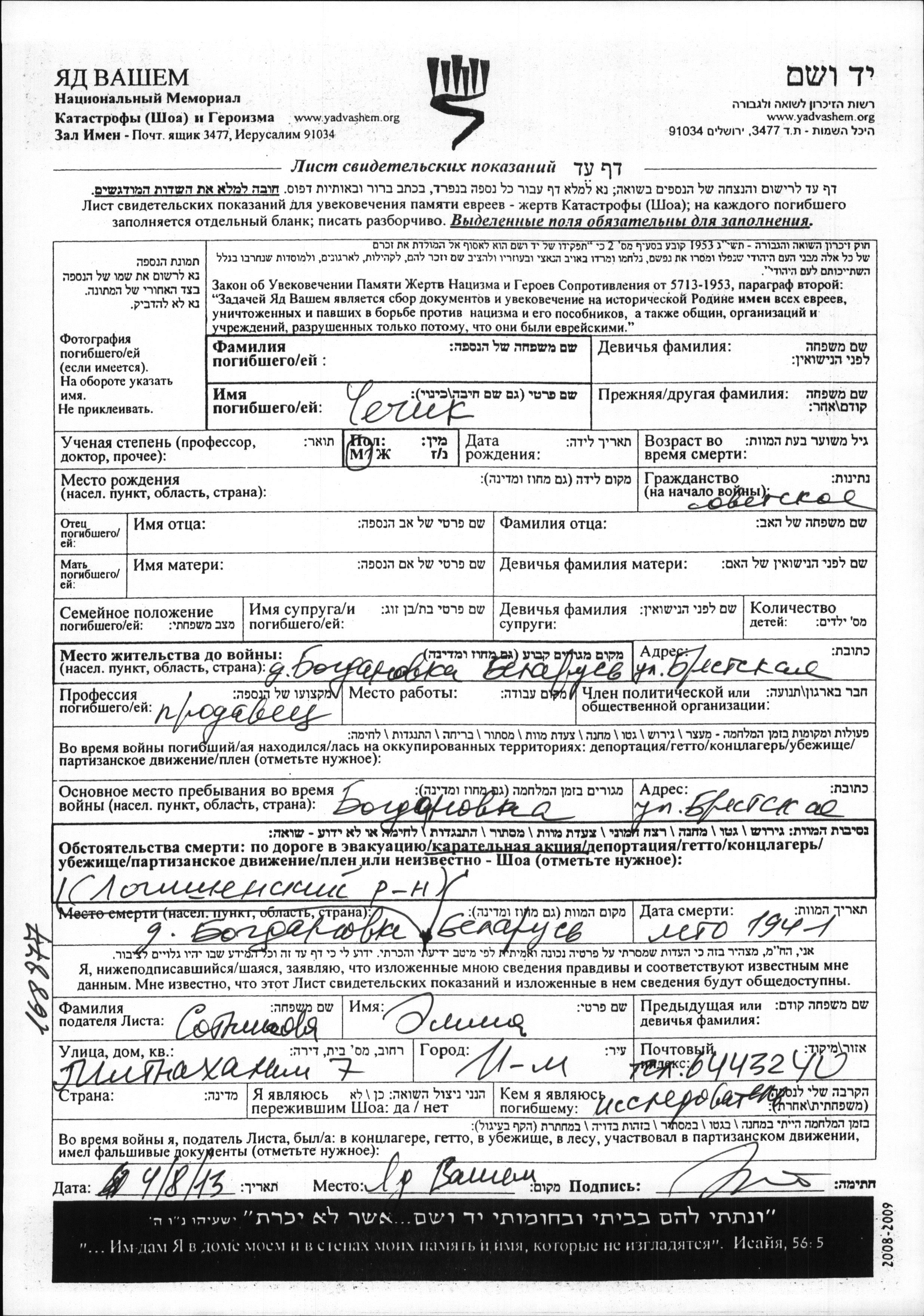 Чечик | Имя неизвестно | Богдановка, Польша | Лист свидетельских показаний | |