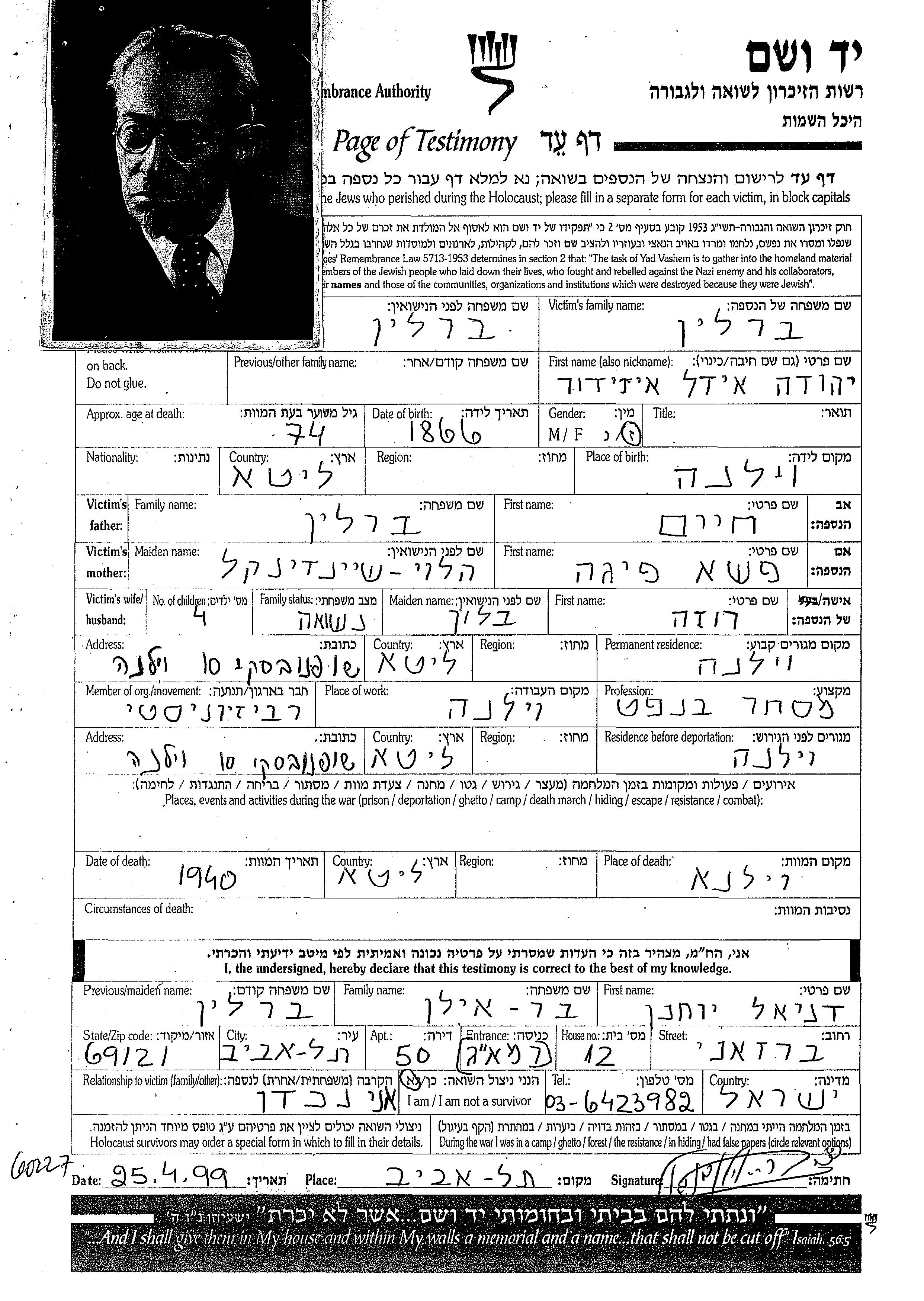Яд Вашем - Листы свидетельских показаний Мемориального фонда