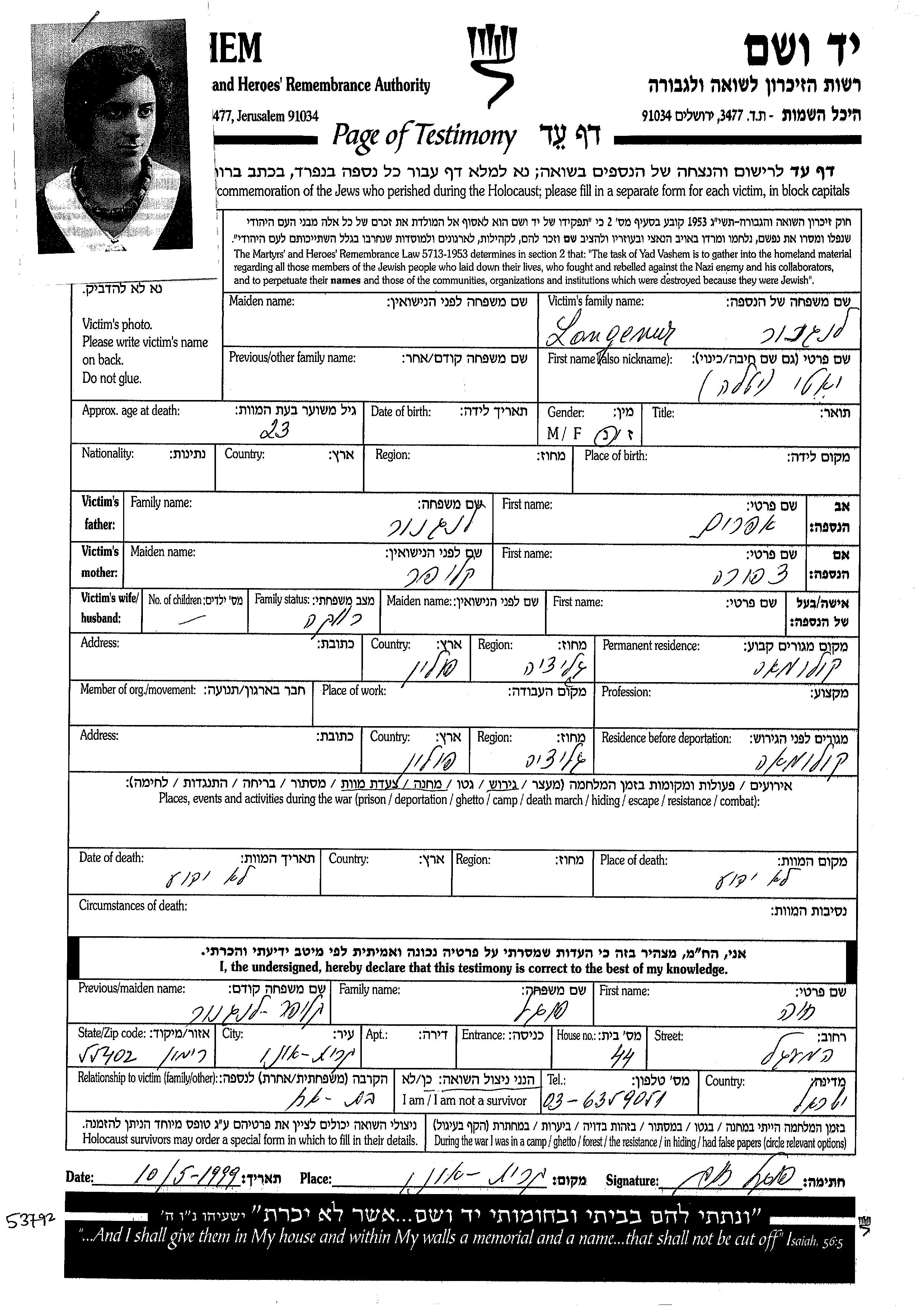 Яд Вашем - Листы свидетельских показаний Мемориального фонда