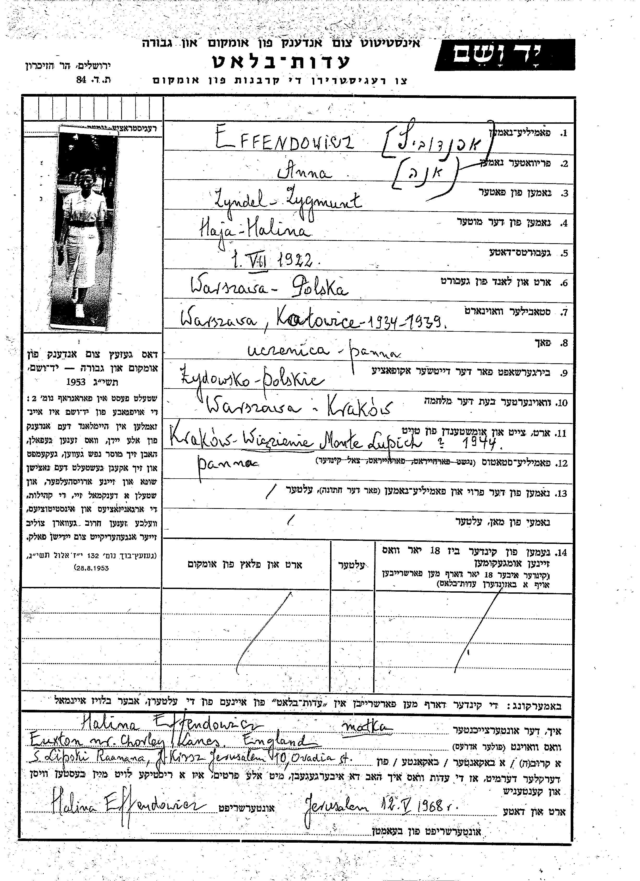 Эффендович Анна 1922 Варшава, Польша Лист свидетельских показаний