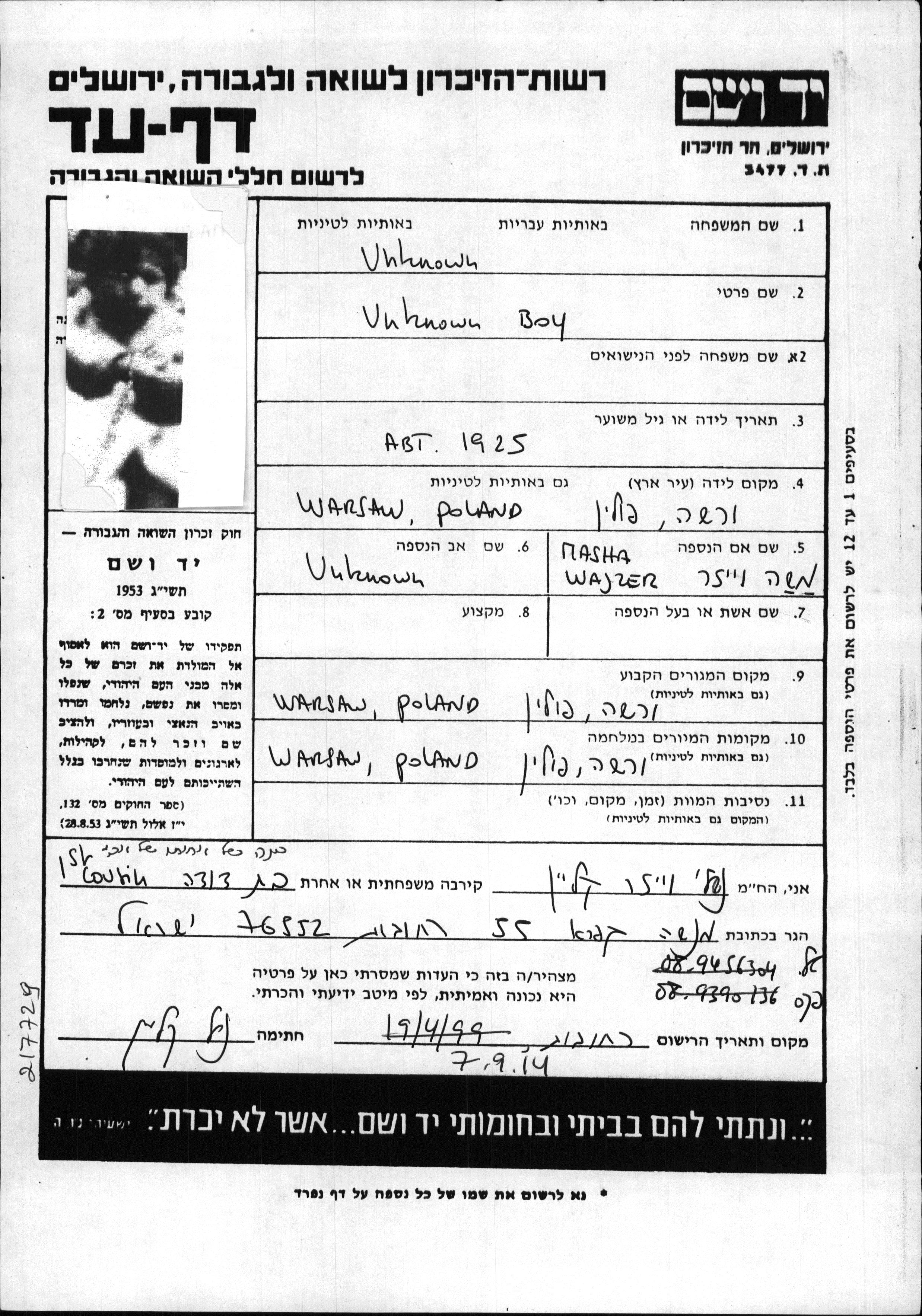 Имя неизвестно Фамилия неизвестна, место рождения: Варшава, Польша. Место жительства до войны: Варшава, Польша.