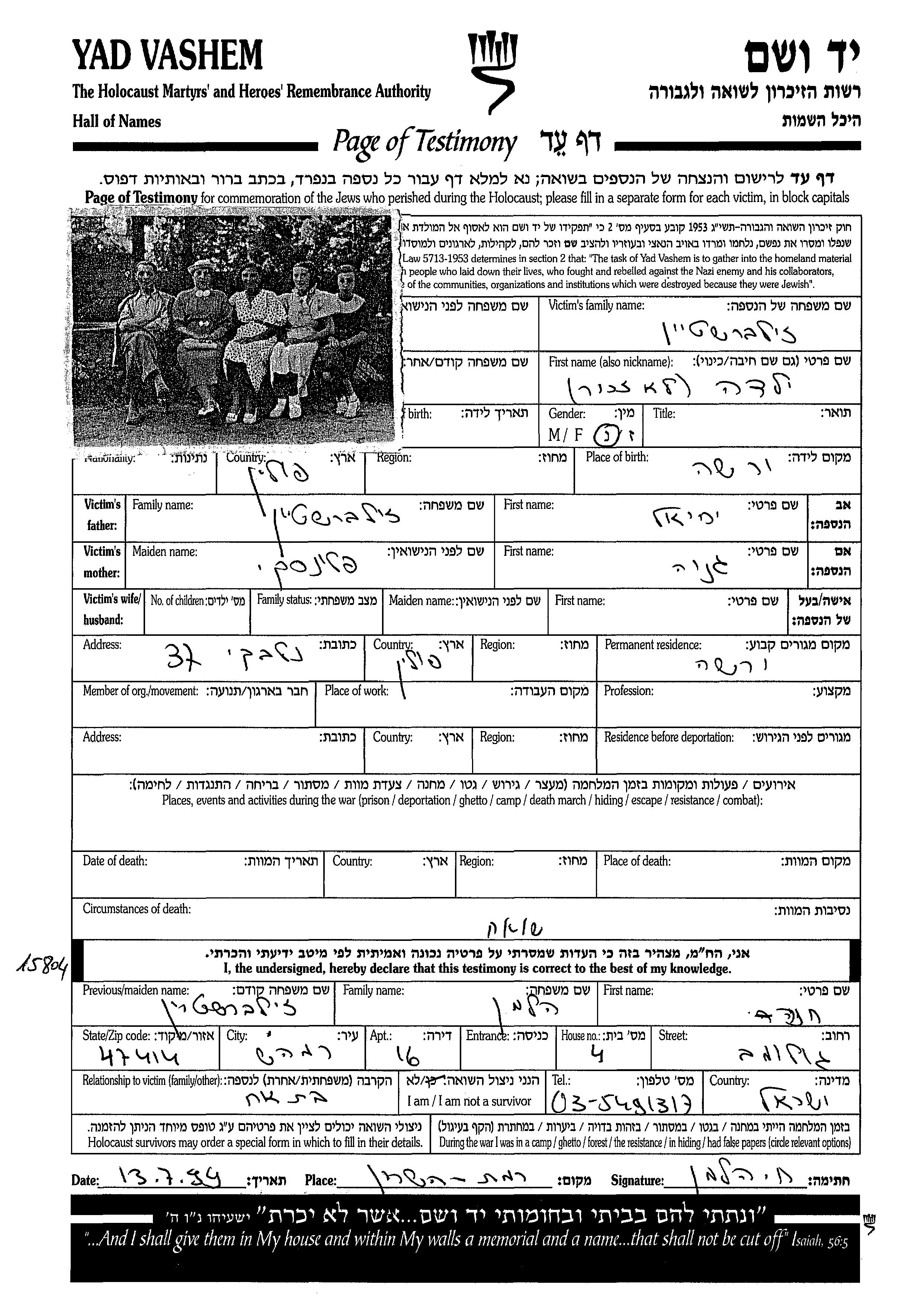 | Зильберштейн | Имя неизвестно | Варшава, Польша | Лист свидетельских показаний | |