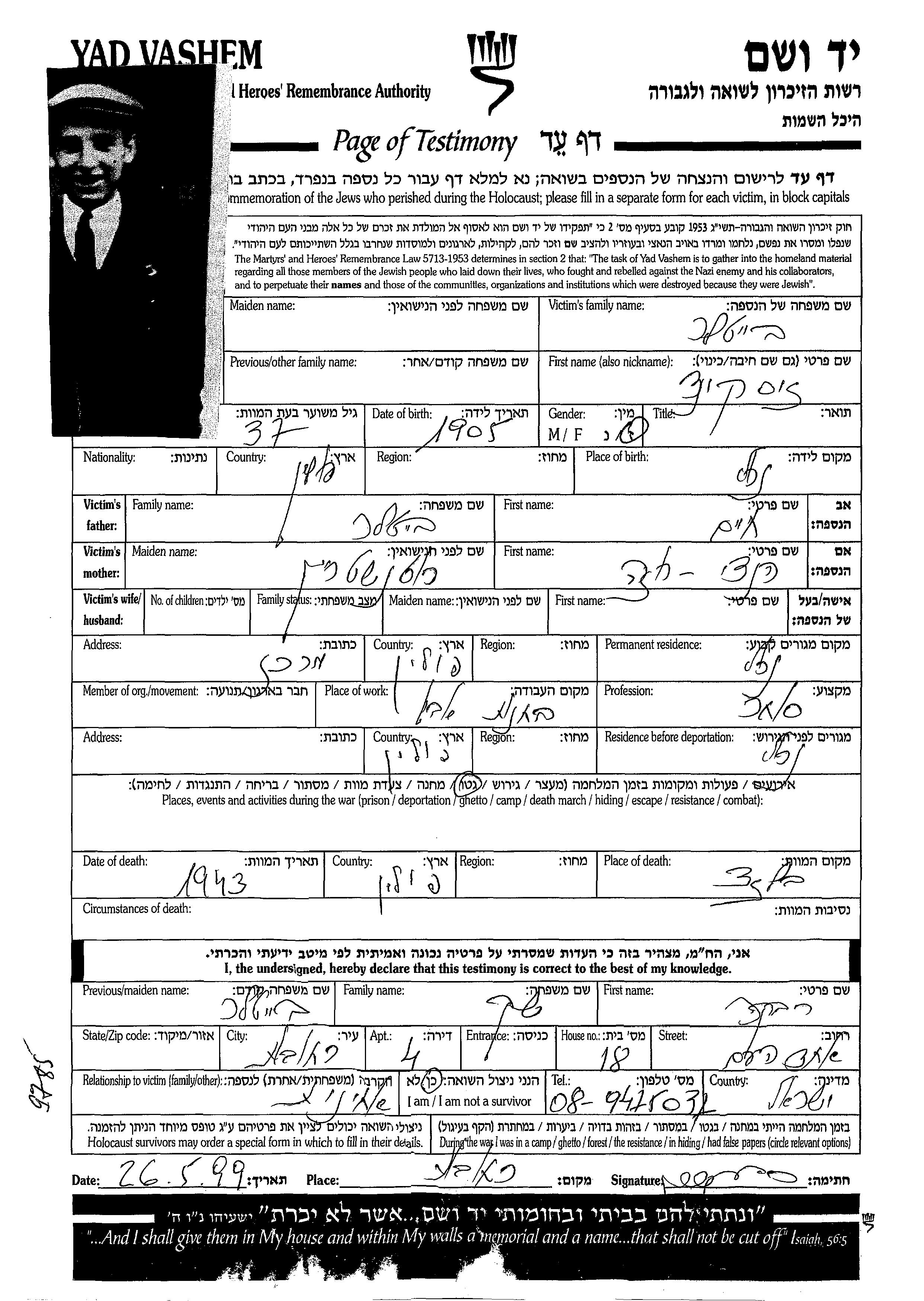 Яд Вашем - Листы свидетельских показаний Мемориального фонда