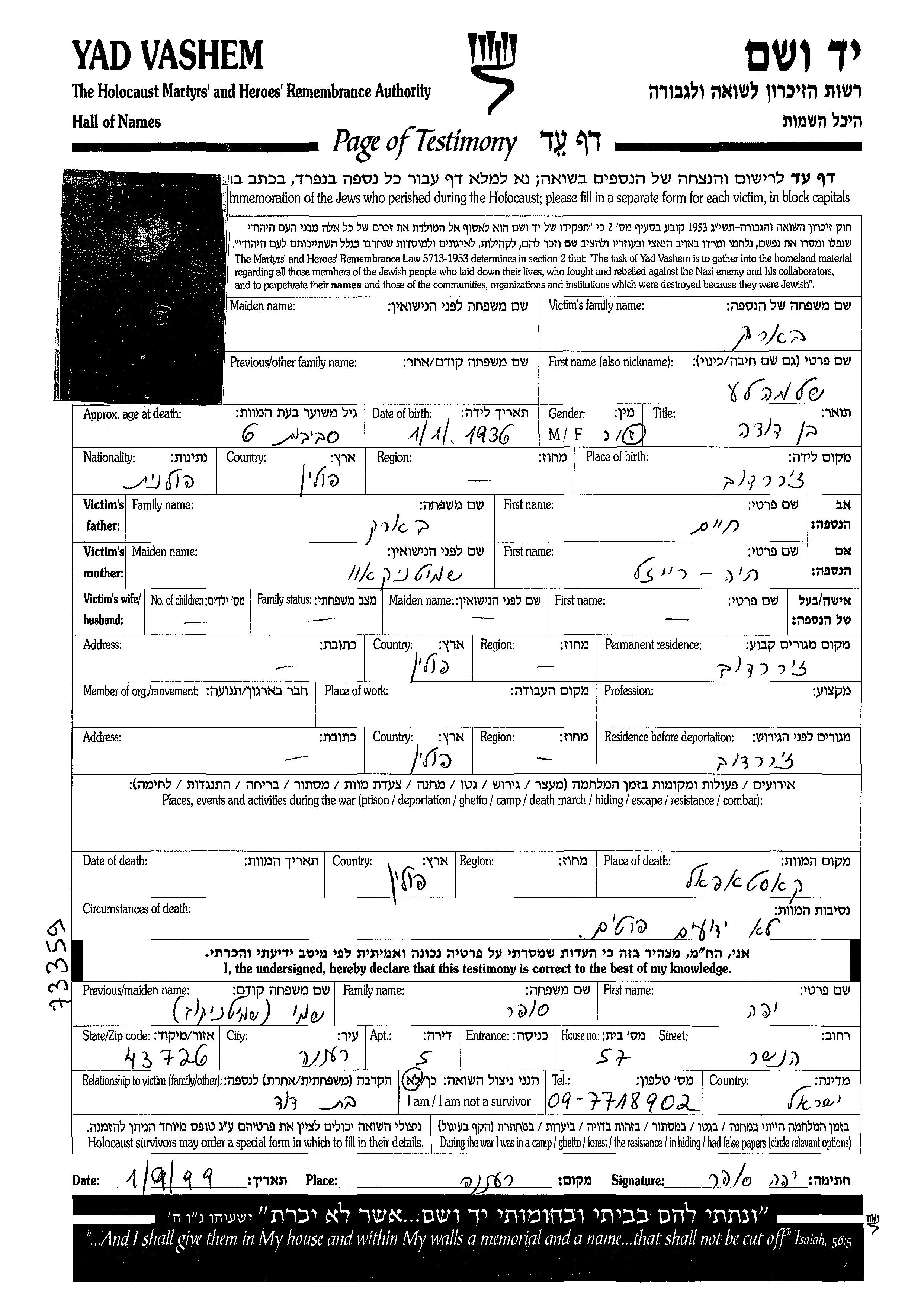 Яд Вашем - Листы свидетельских показаний Мемориального фонда
