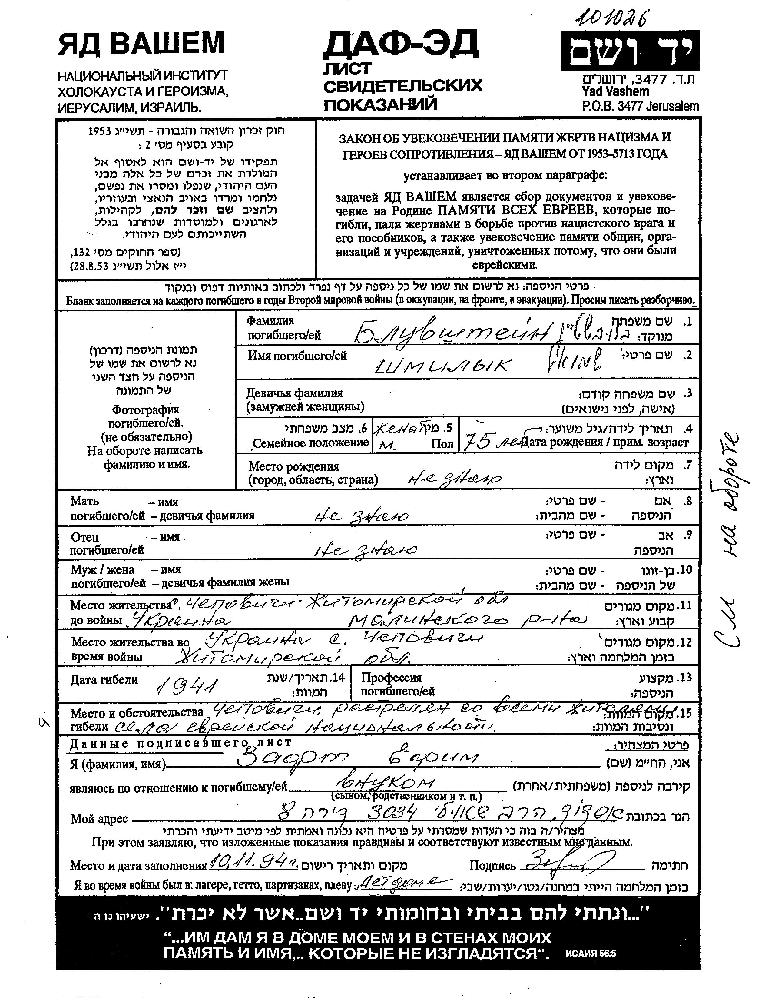 Поиск подателя Листа свидетельских показаний. Поиск по любому имени, включая уменьшительное или прозвище