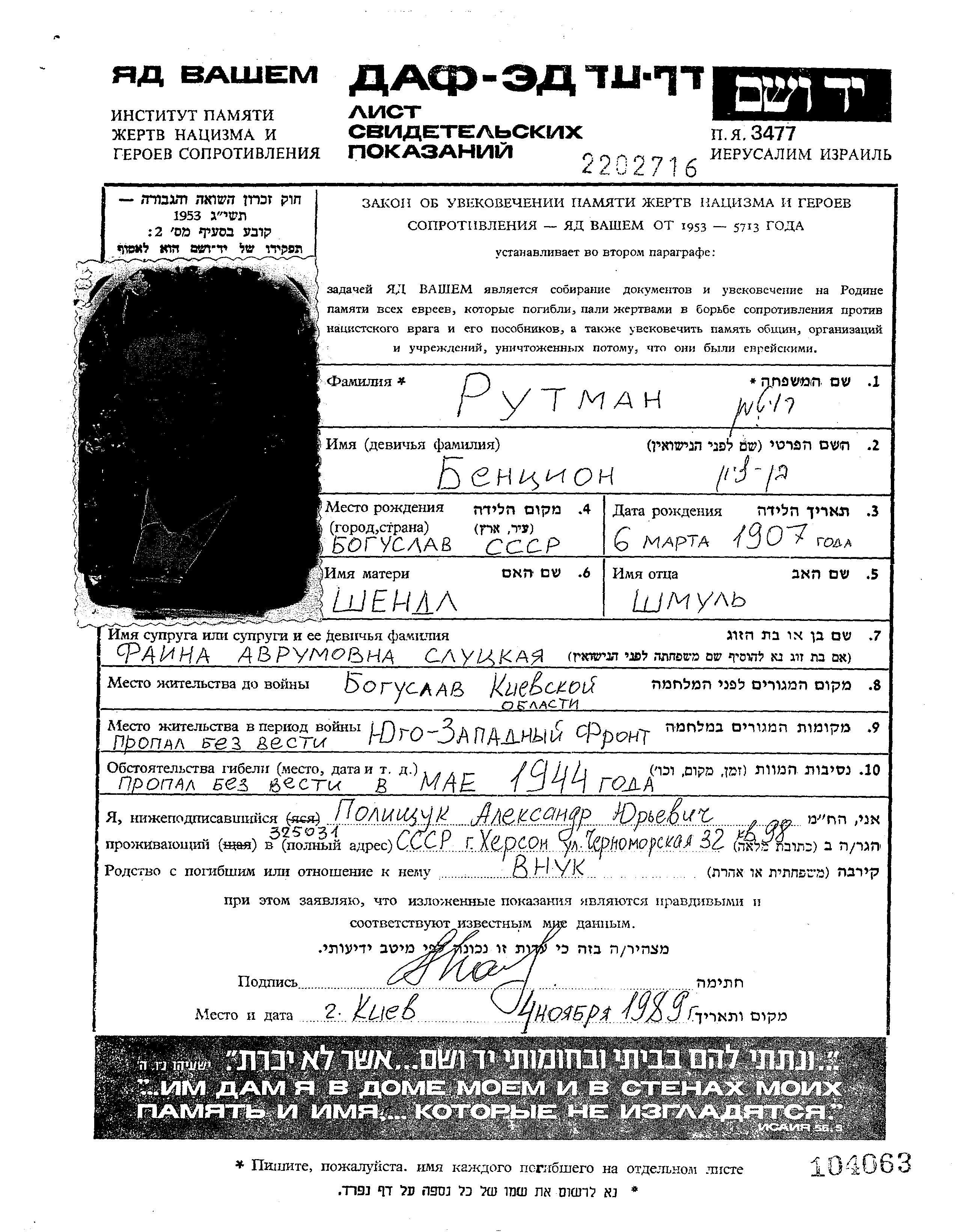 Поиск подателя Листа свидетельских показаний. Поиск по любому имени, включая уменьшительное или прозвище