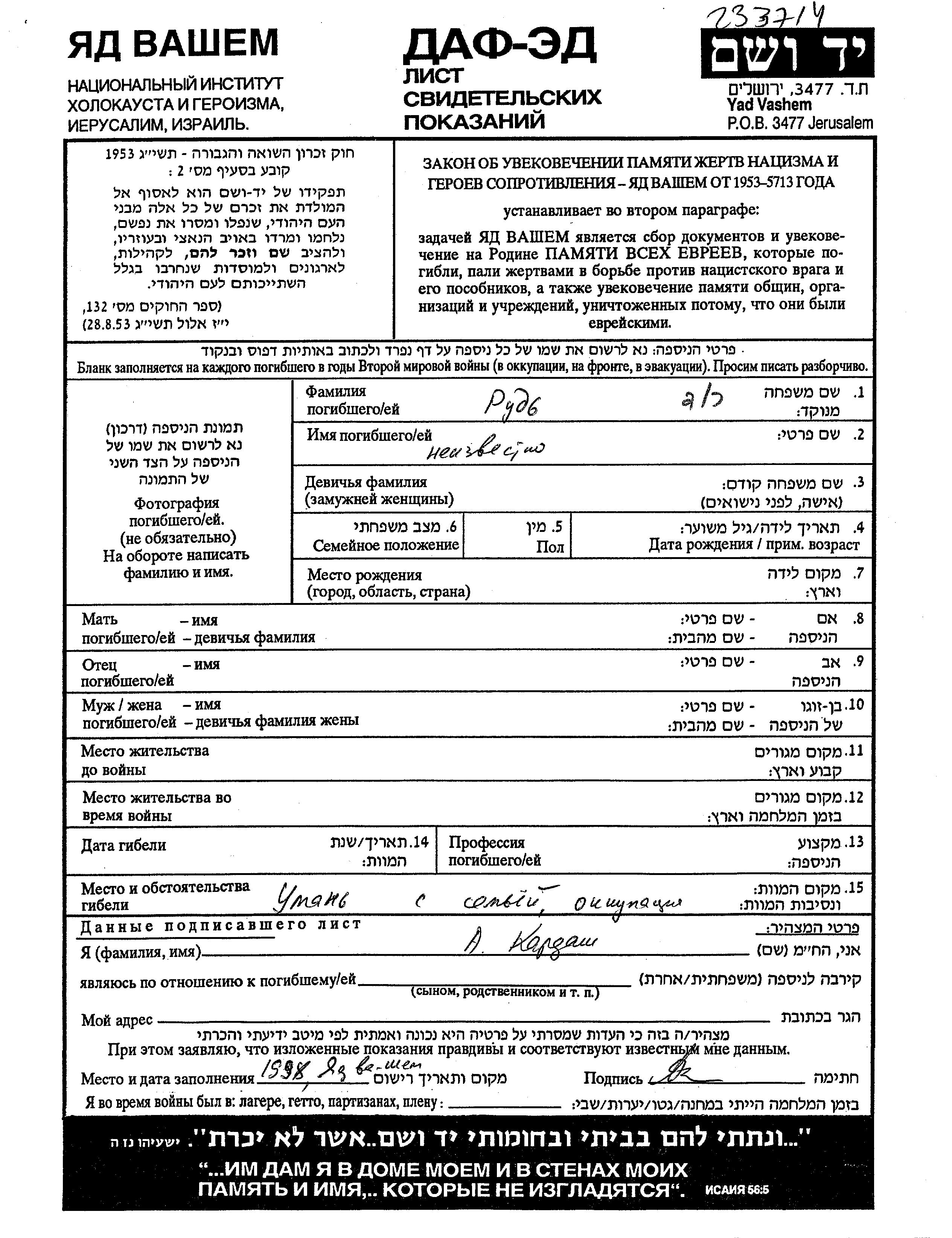Поиск подателя Листа свидетельских показаний. Поиск по любому имени, включая уменьшительное или прозвище