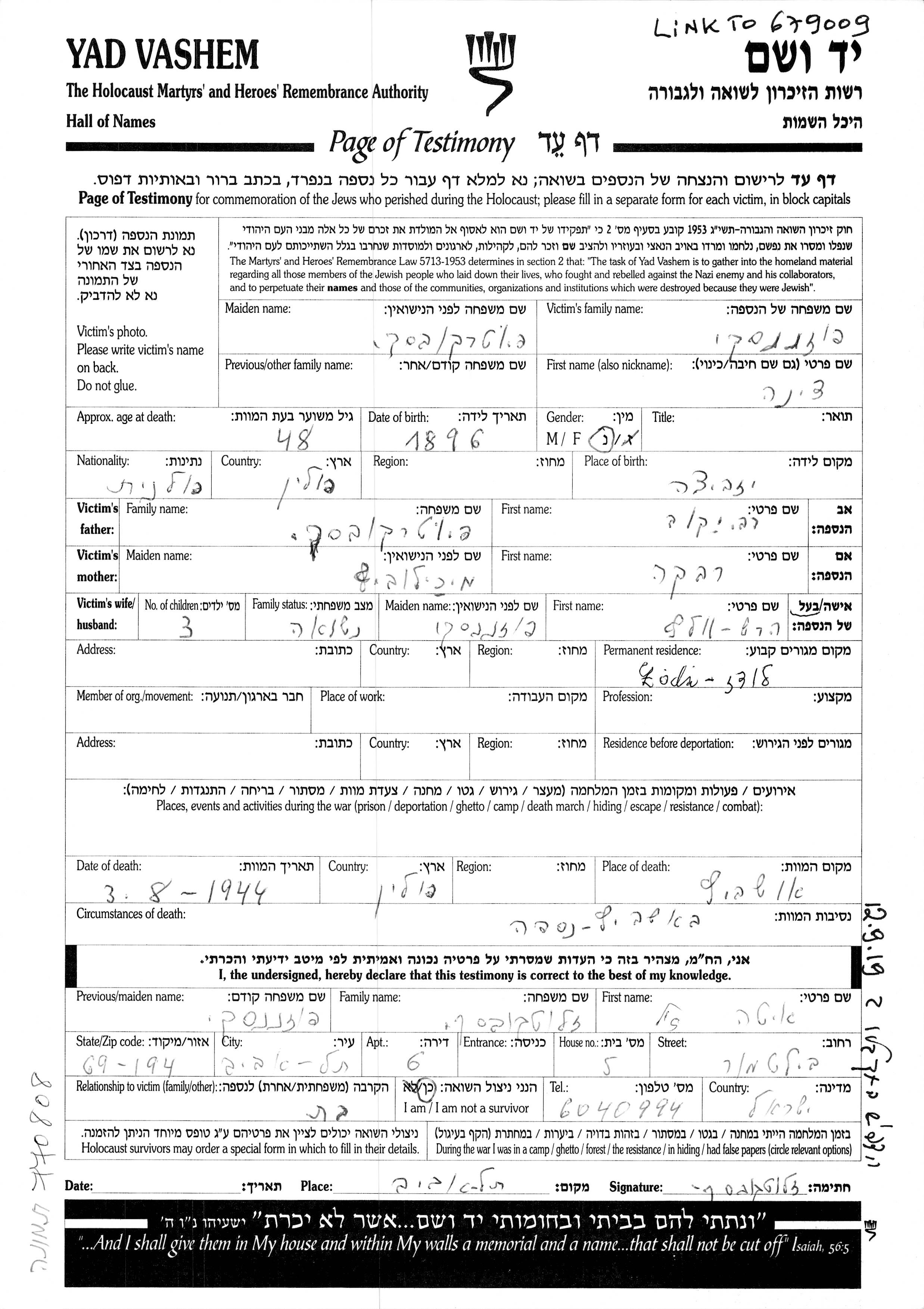 Яд Вашем - Листы свидетельских показаний Мемориального фонда