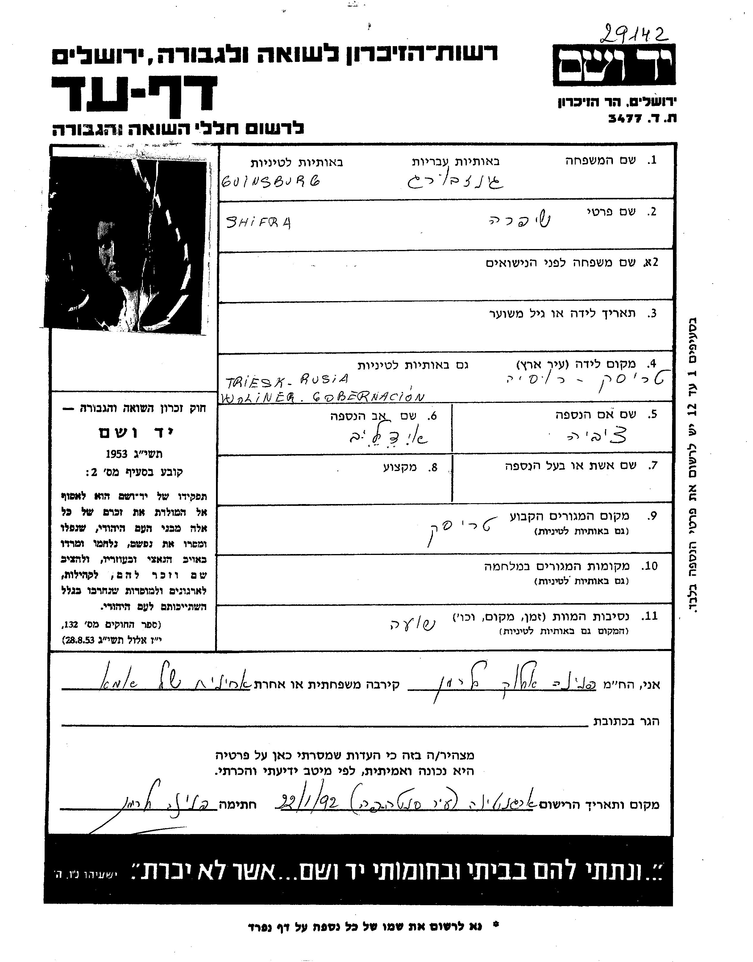 Яд Вашем - Листы свидетельских показаний Мемориального фонда