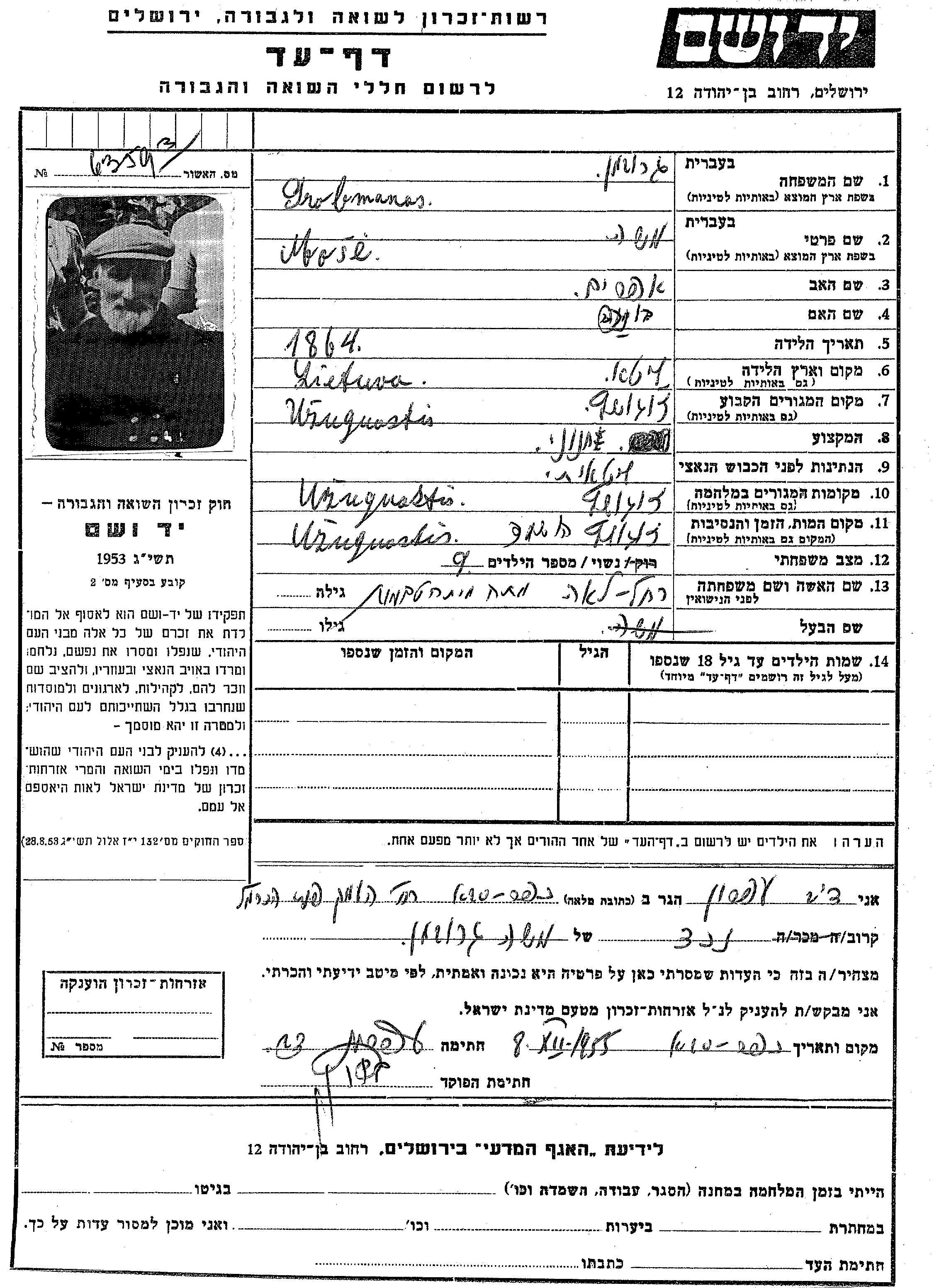 Моше уничтожен в период Шоа. место смерти: Ужугуостис, Литва.