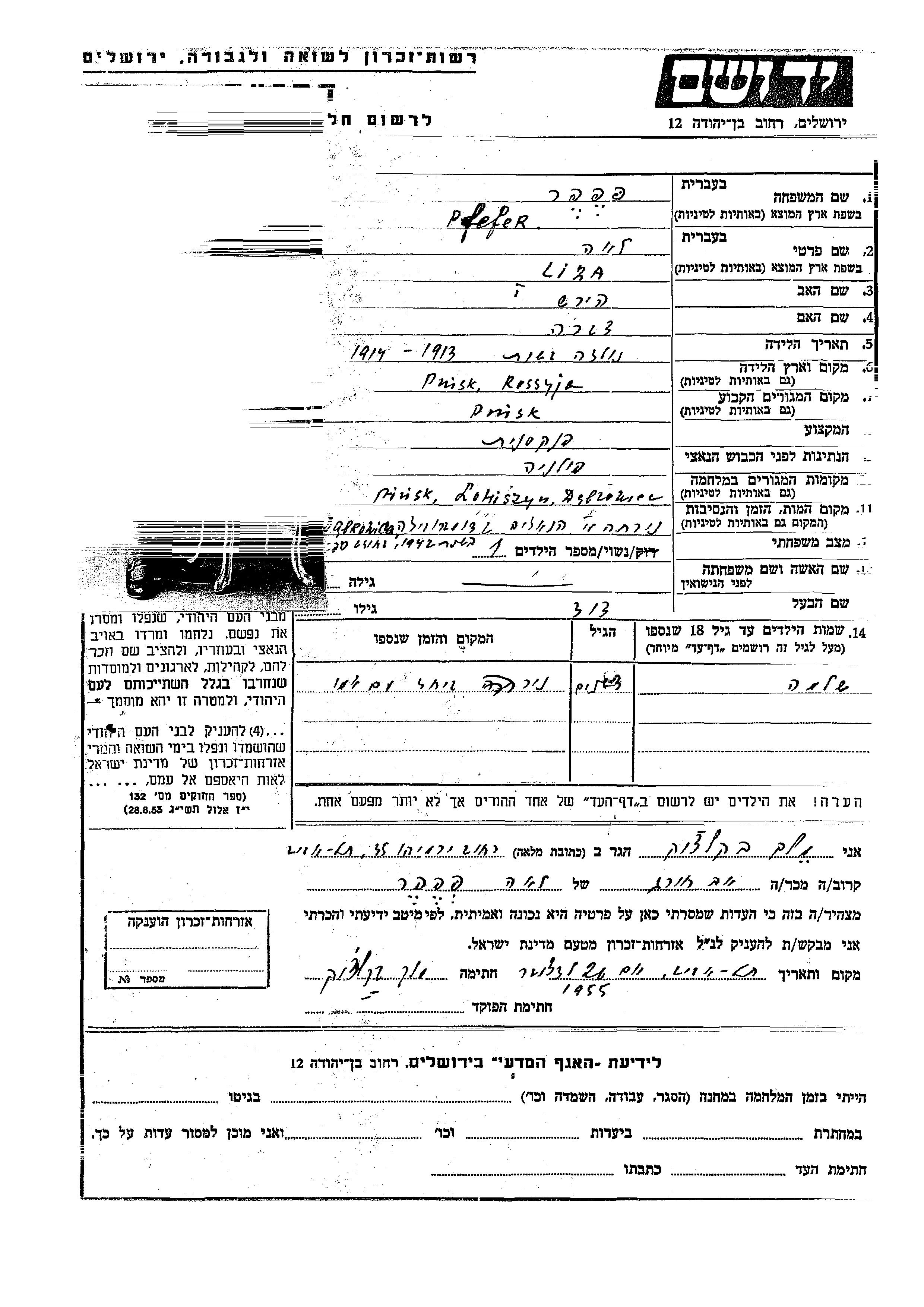 Пфефер Лиза Лея 1913 Пинск, Польша Лист свидетельских показаний