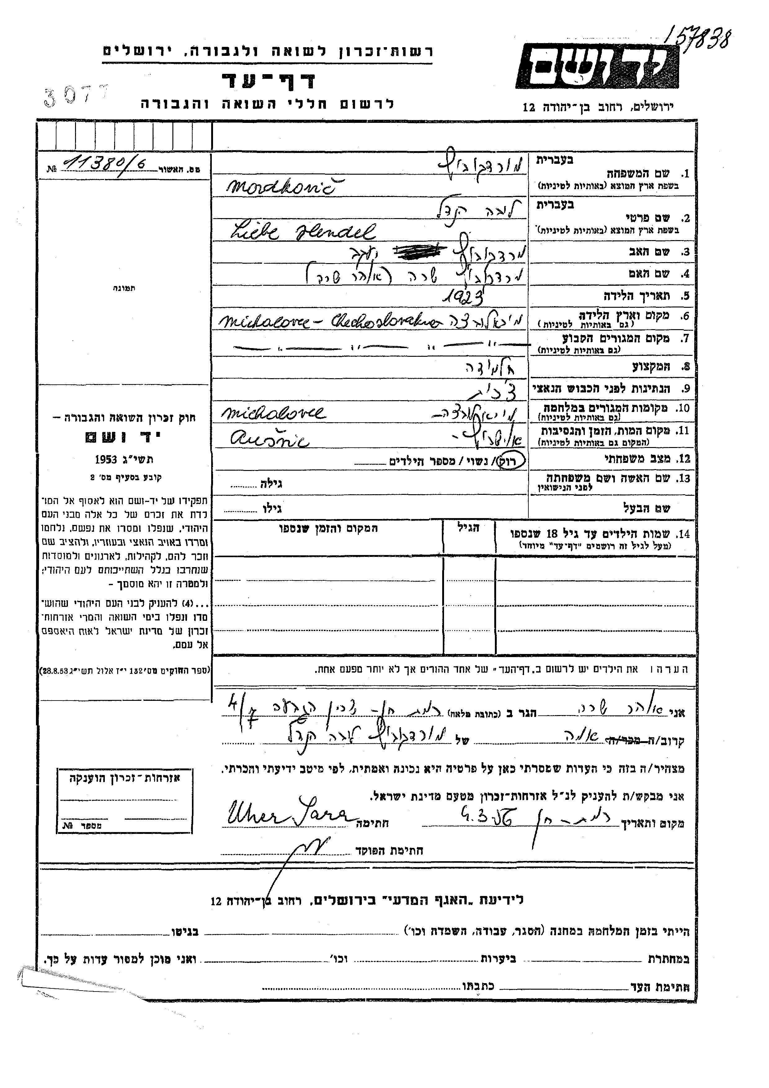 Яд Вашем - Листы свидетельских показаний Мемориального фонда