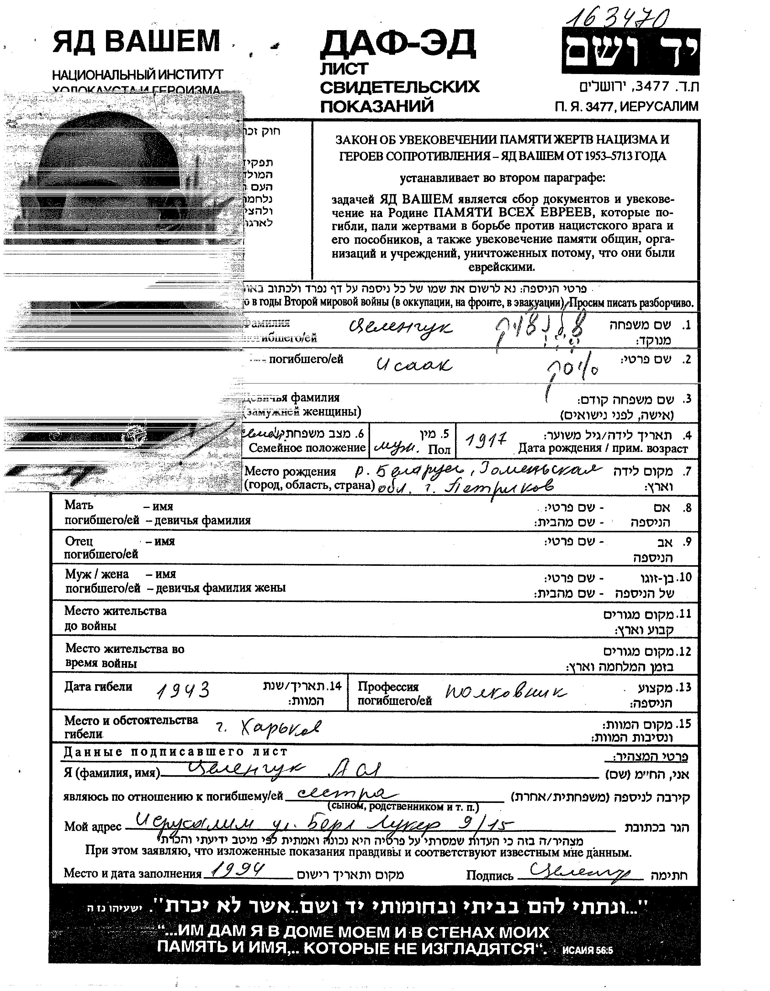 Целенчук | Исаак | 1917 | место не указано, | Лист свидетельских показаний |