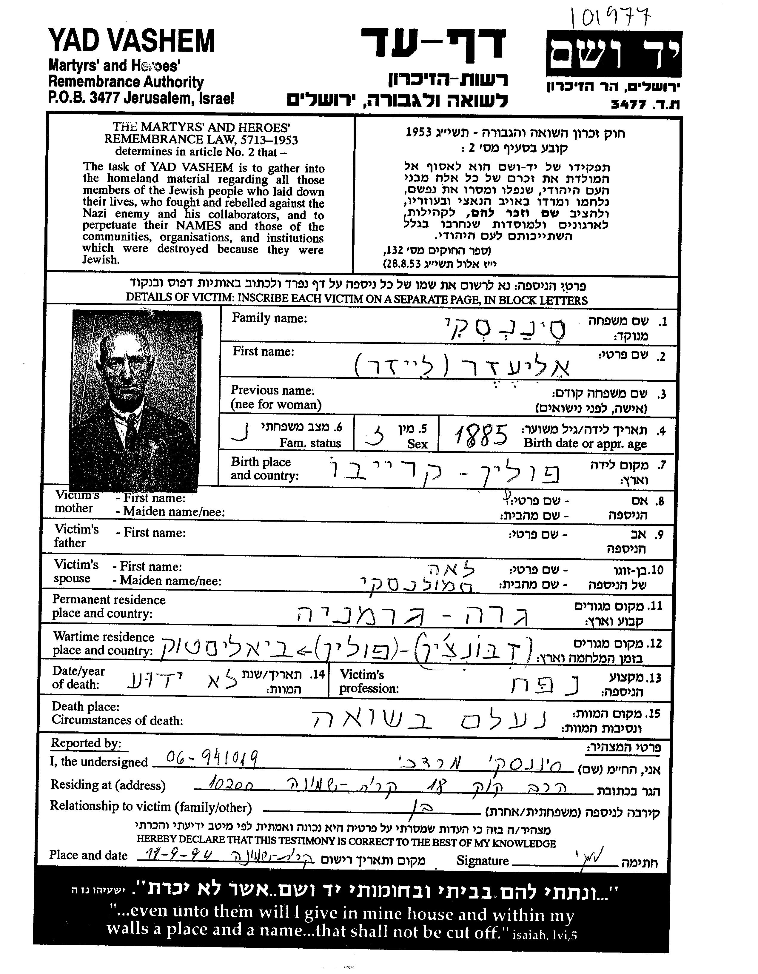 Яд Вашем - Листы свидетельских показаний Мемориального фонда