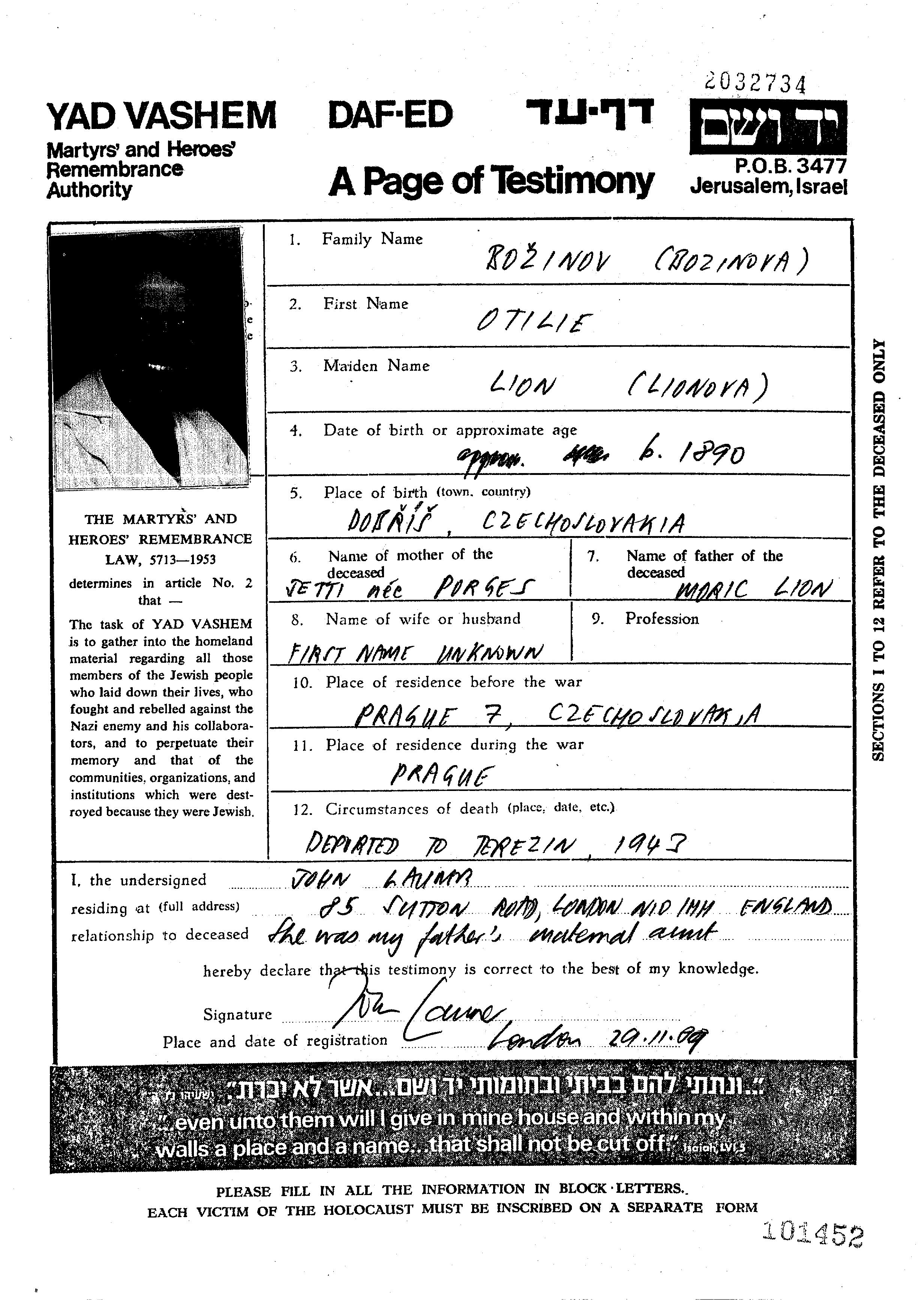 | Божинов Божинова | Отилие | 1890 | Прага, Чехословакия | Лист свидетельских показаний |