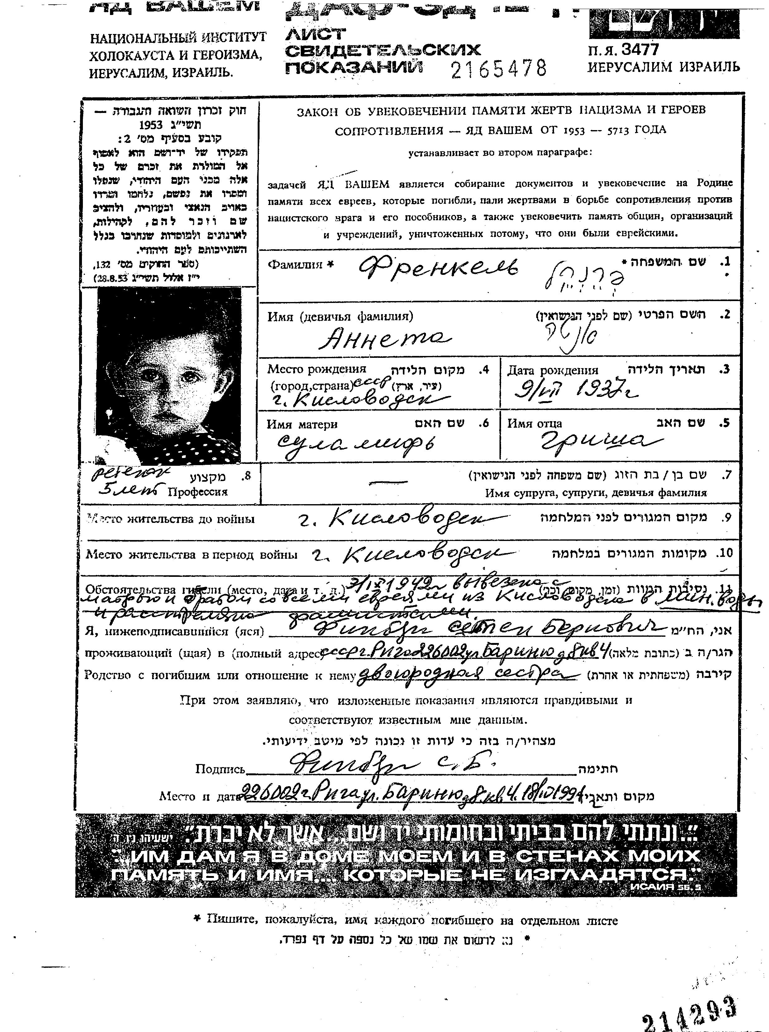 Яд Вашем - Листы свидетельских показаний Мемориального фонда