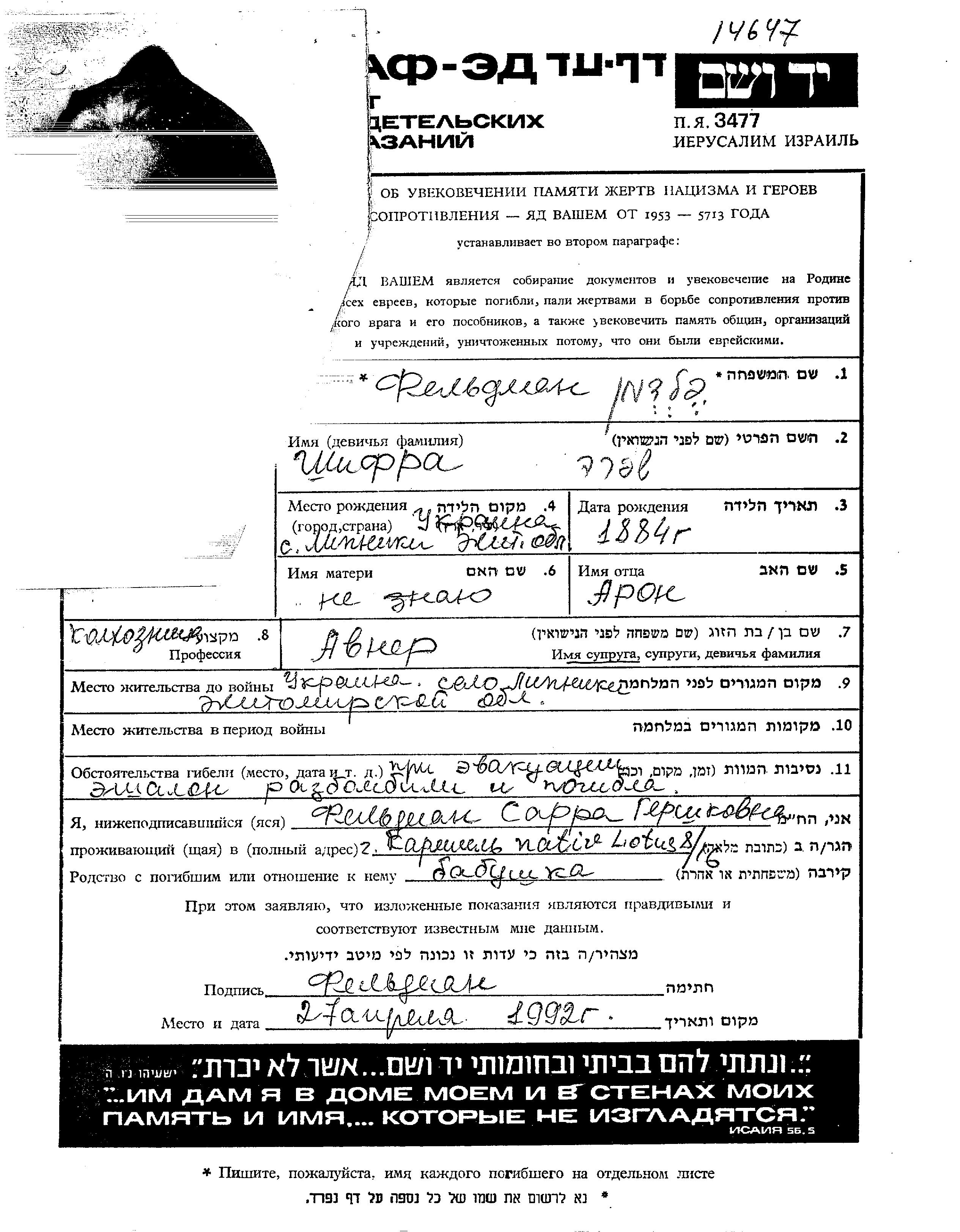 Фельдман | Шифра | 1884 | Липники, Украина (СССР) | Лист свидетельских показаний |