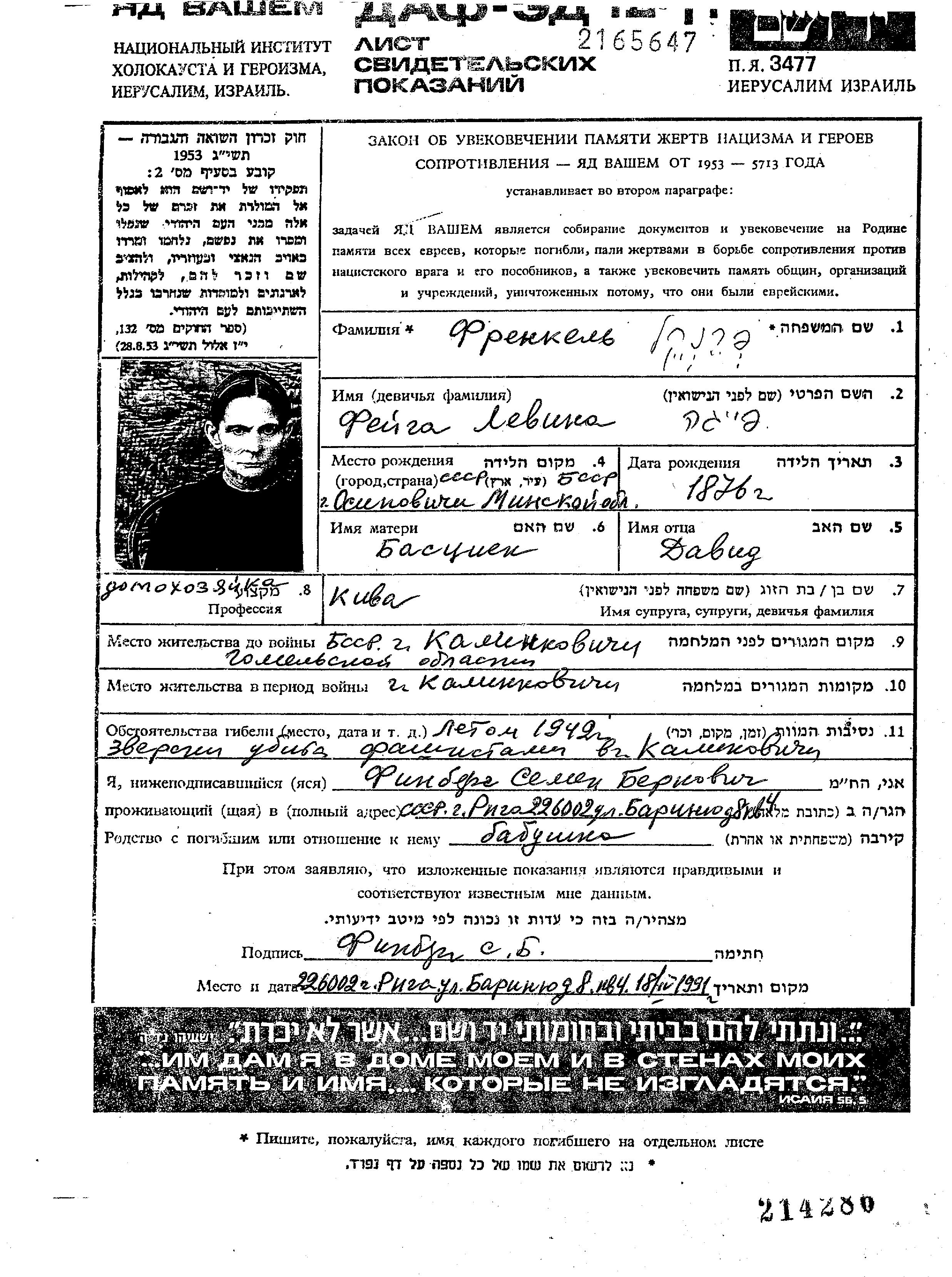 | Френкель | Фейга | 1876 | место не указано, | Лист свидетельских показаний |