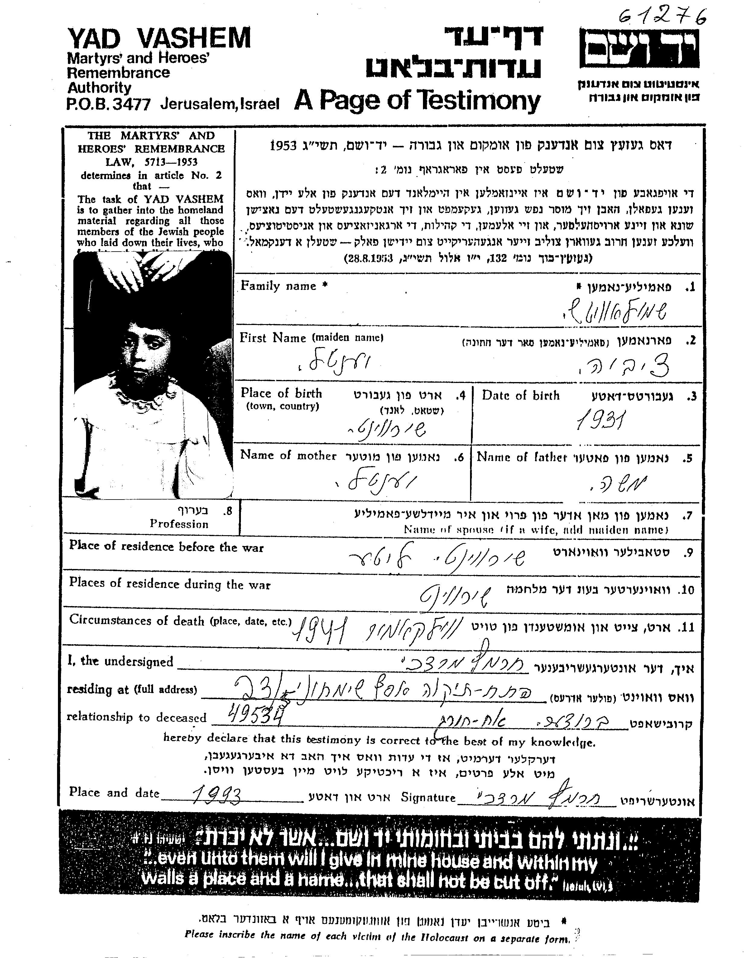 Шмулович | Цвия | 1931 | Ширвинт, Литва | Лист свидетельских показаний |