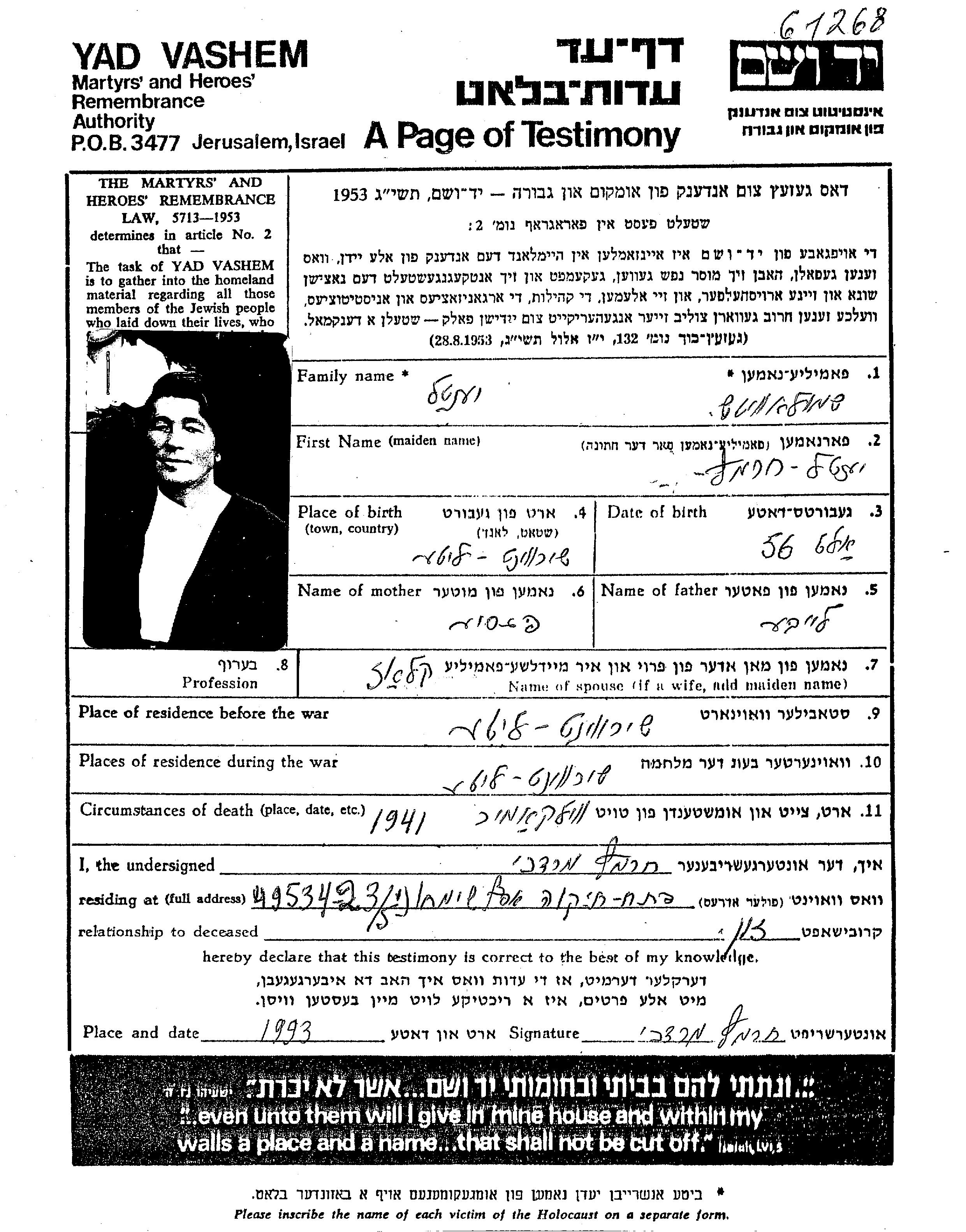 Шмулович Хармац | Ентель | Ширвинт, Литва | Лист свидетельских показаний | |