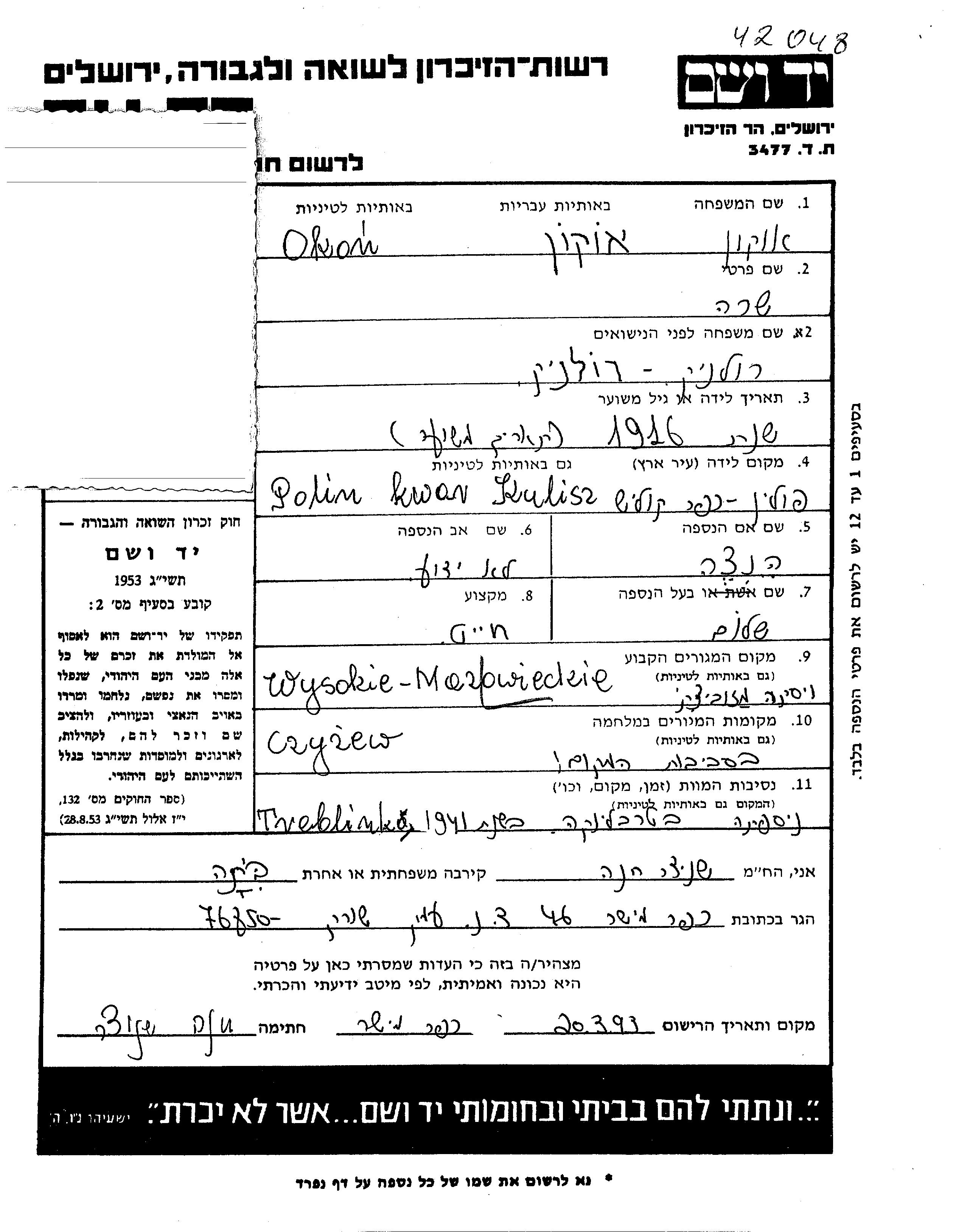 Яд Вашем - Листы свидетельских показаний Мемориального фонда