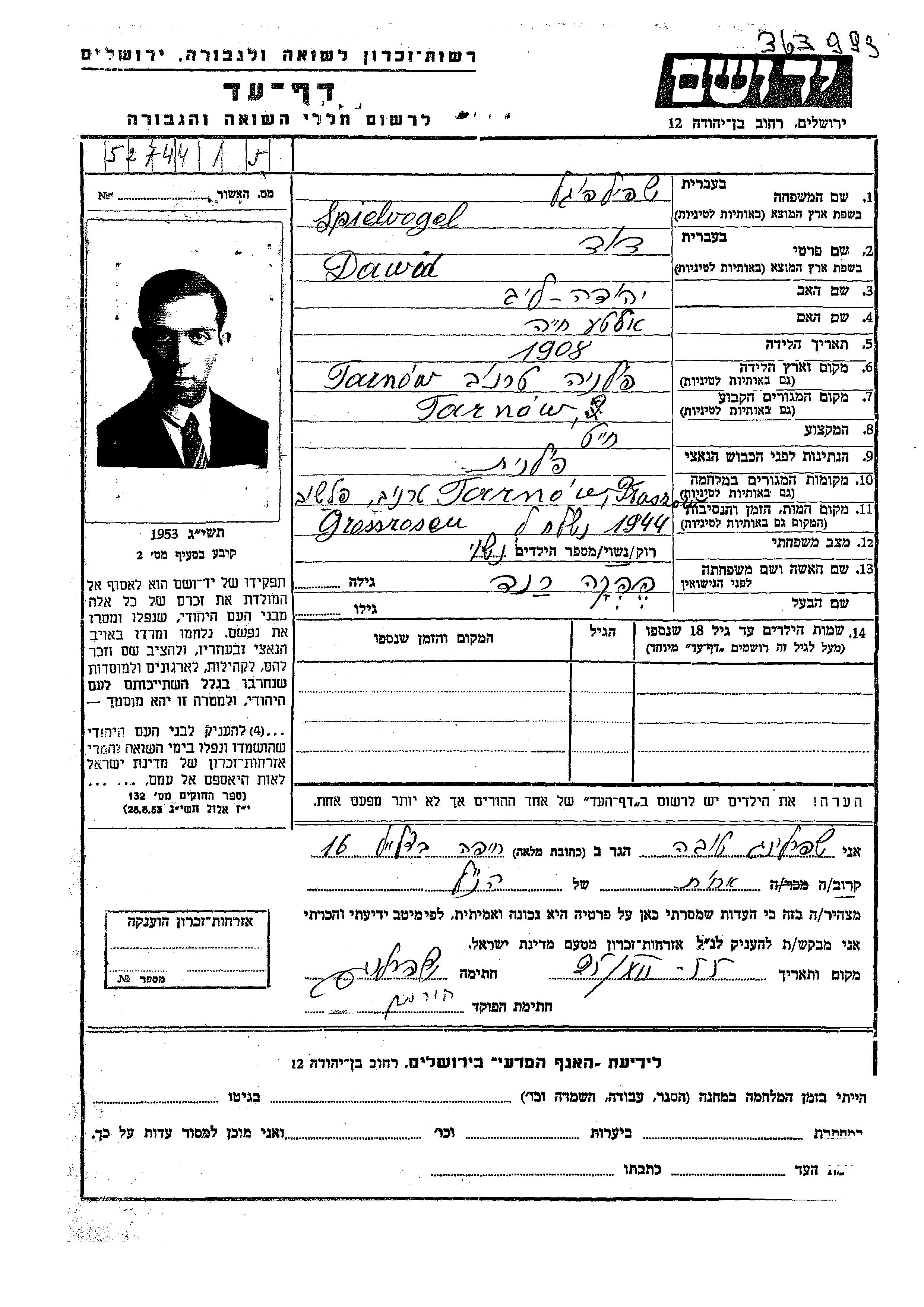 Шпильфогель Давид 1908 Тарнув, Польша Лист свидетельских показаний