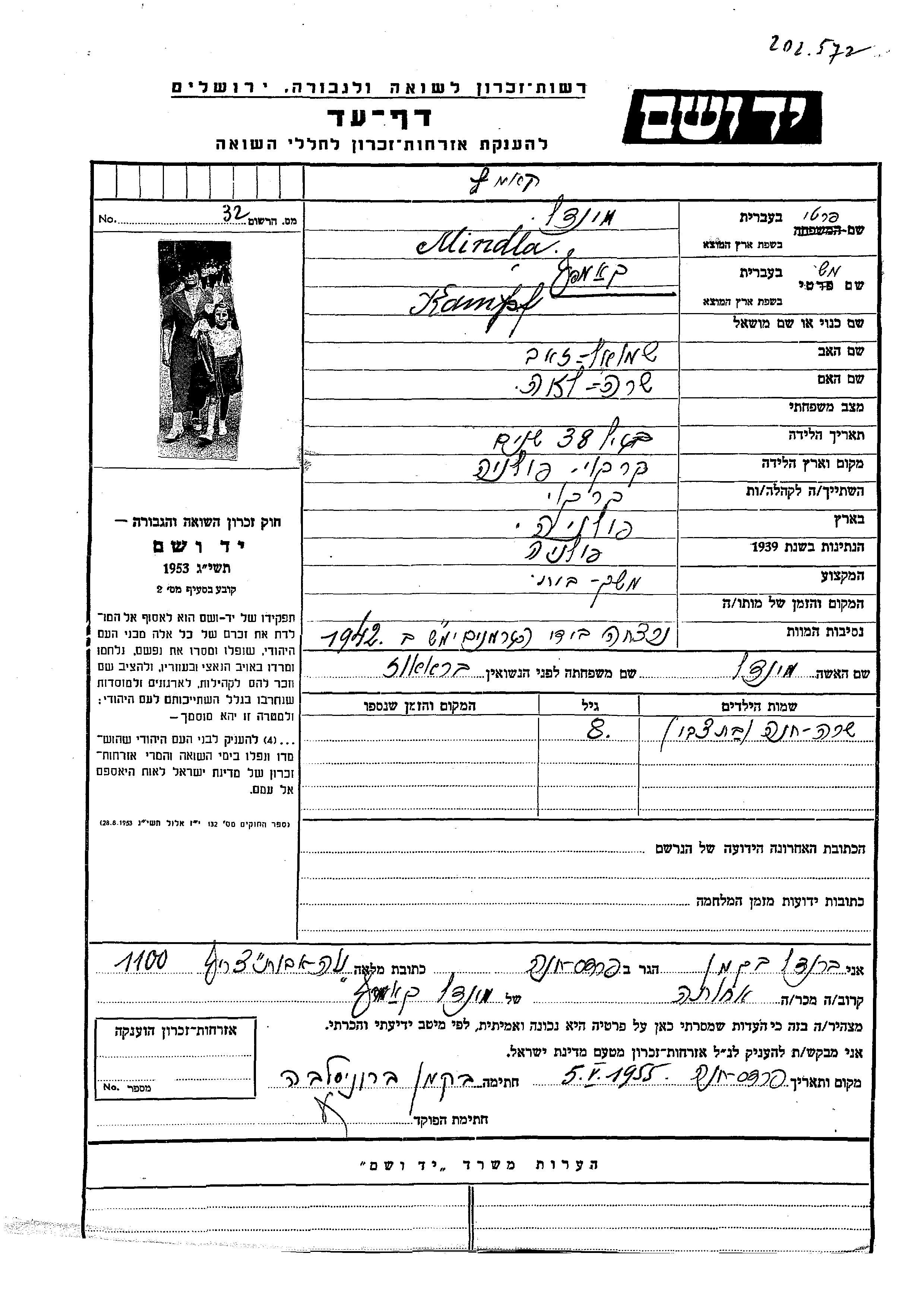 Яд Вашем - Листы свидетельских показаний Мемориального фонда