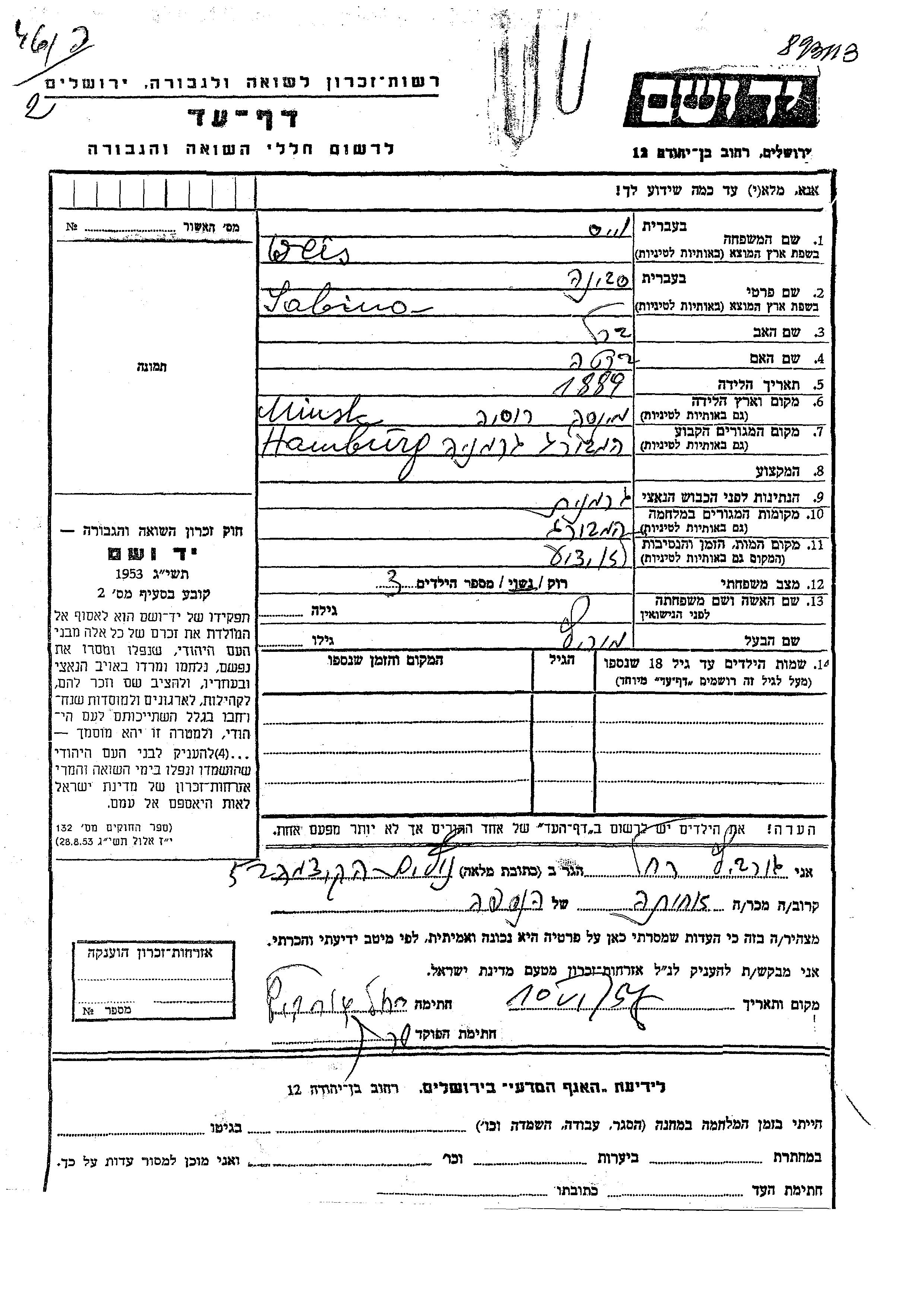 Вейс | Сабина | 1889 | Гамбург, Германия | Лист свидетельских показаний |