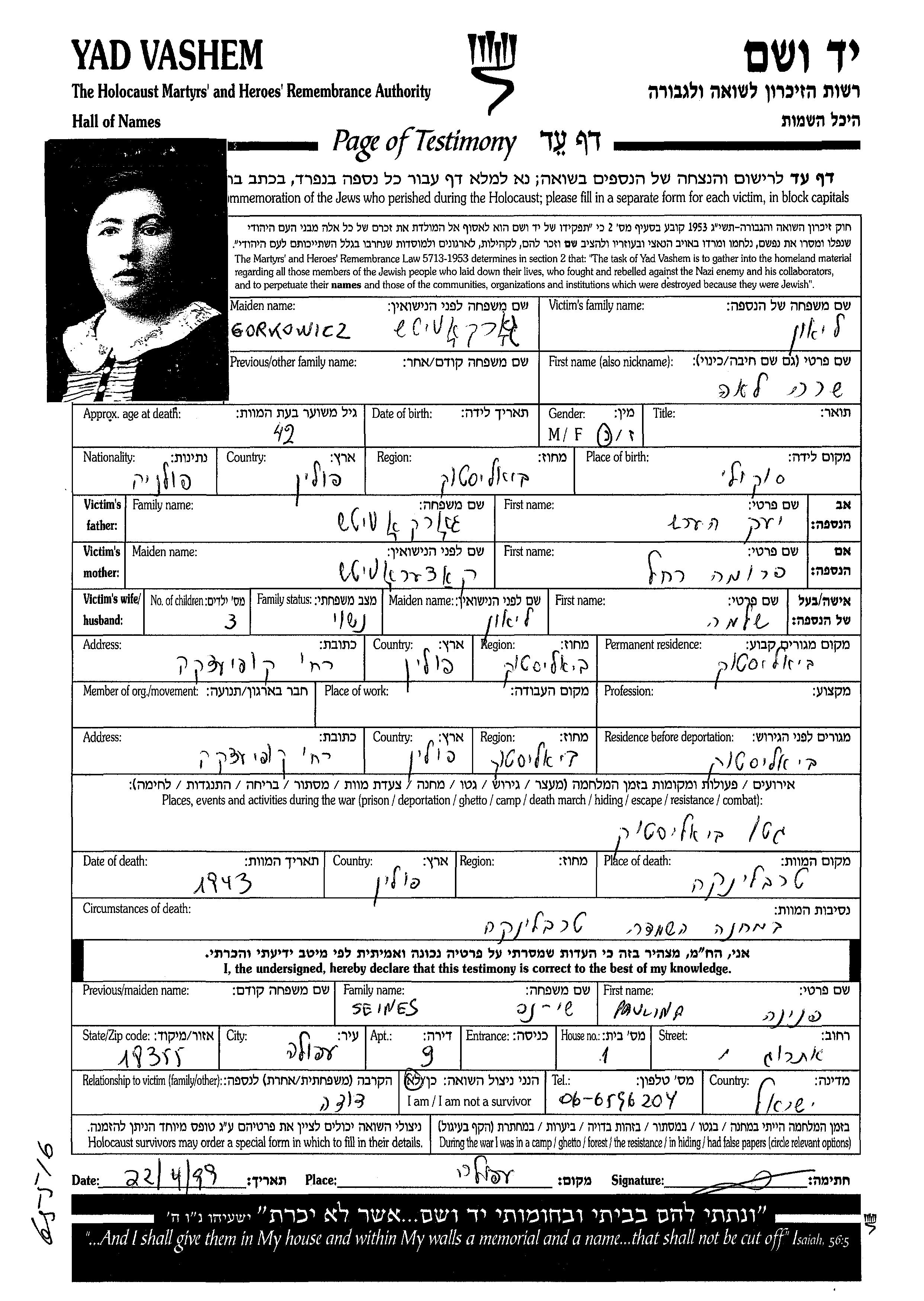 Яд Вашем - Листы свидетельских показаний Мемориального фонда