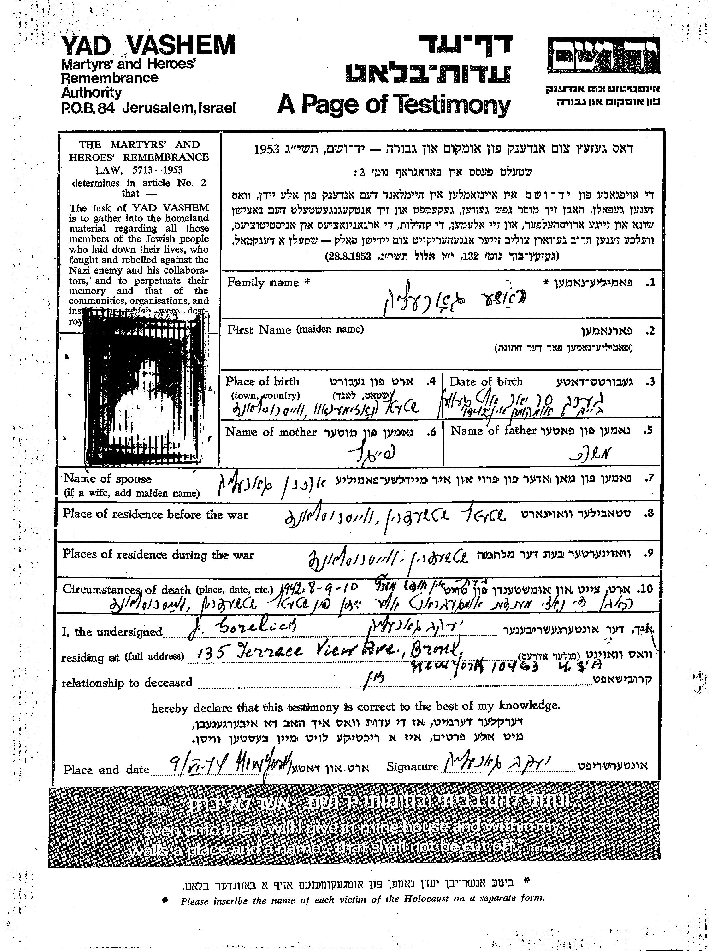 Яд Вашем - Листы свидетельских показаний Мемориального фонда