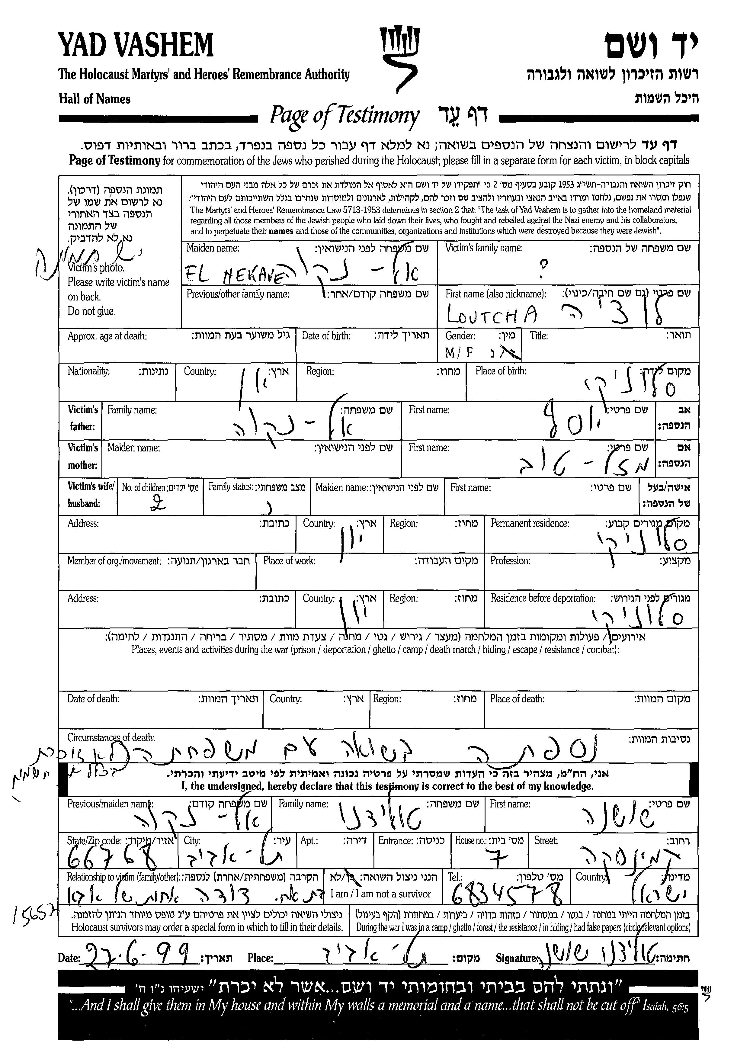 Фамилия неизвестна | Луча | Салоники, Греция | Лист свидетельских показаний | |