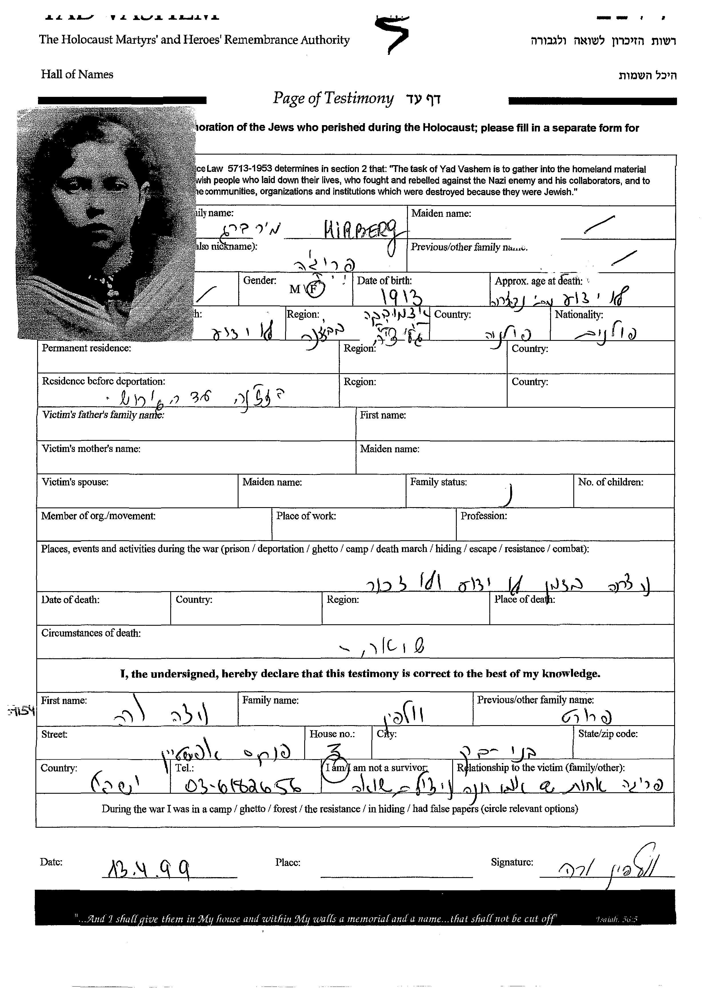 Яд Вашем - Листы свидетельских показаний Мемориального фонда