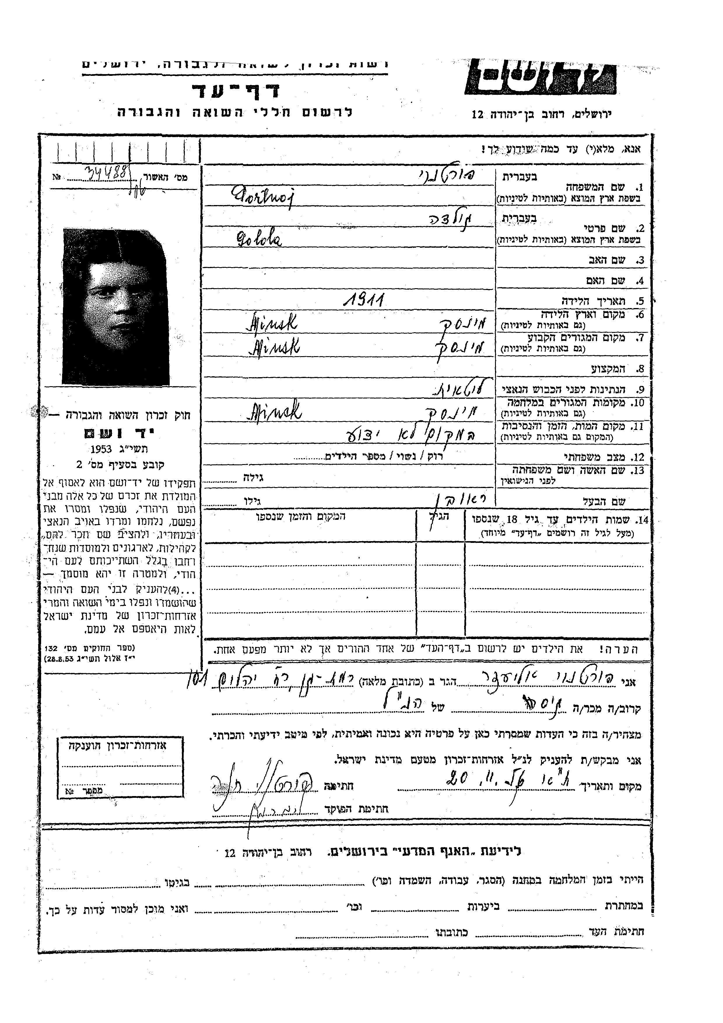 Яд Вашем - Листы свидетельских показаний Мемориального фонда