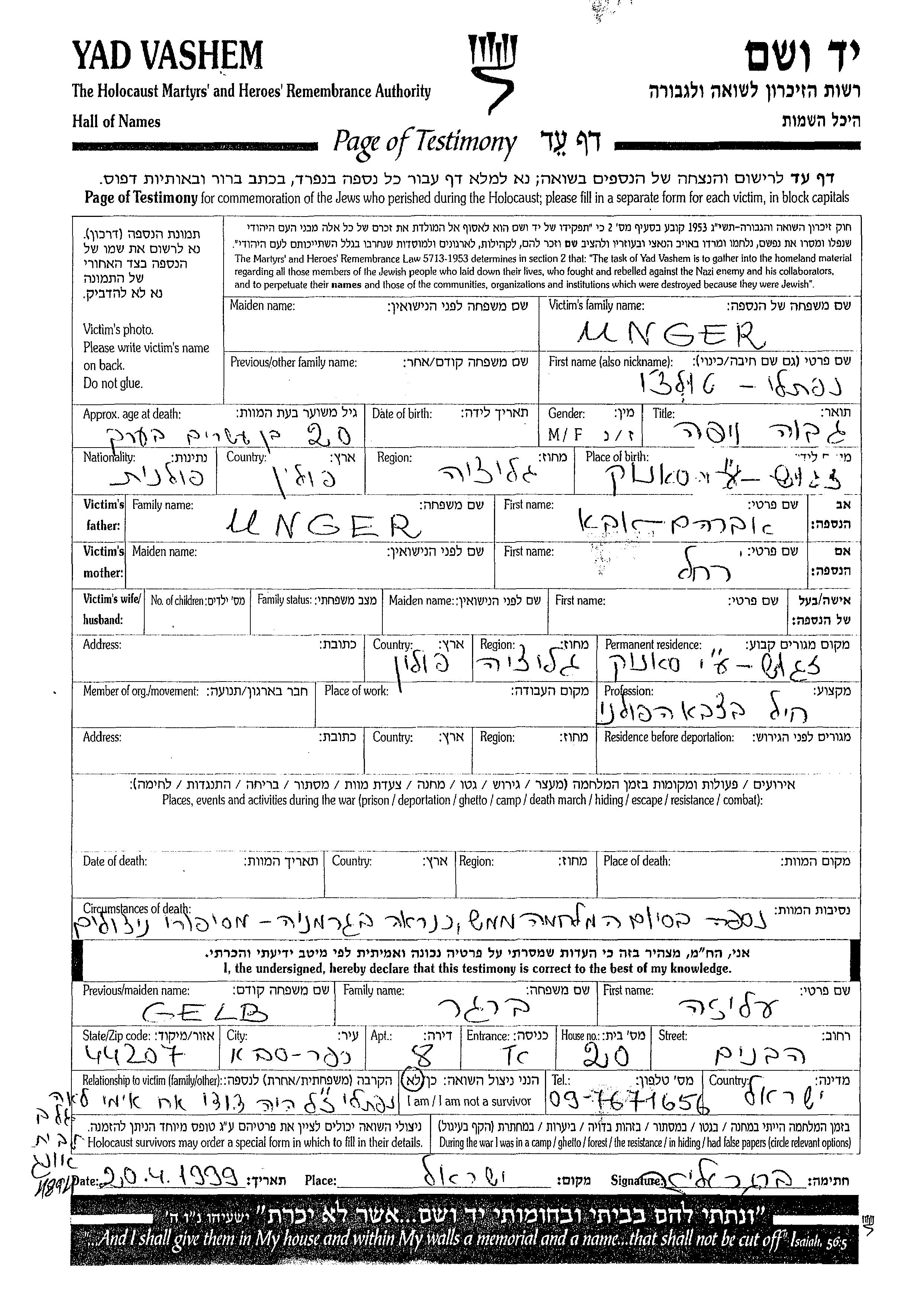 Яд Вашем - Листы свидетельских показаний Мемориального фонда