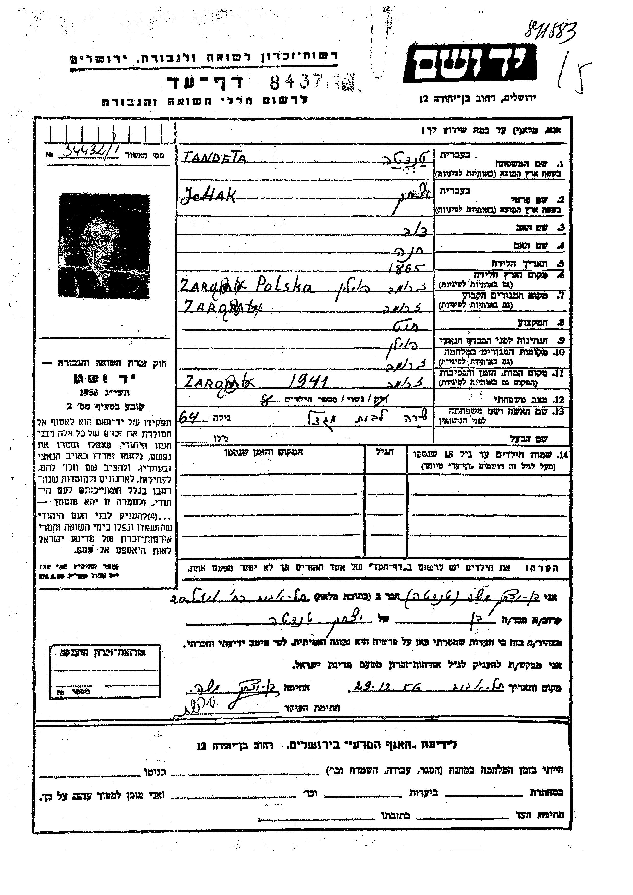 | Тандета | Ицхак | 1865 | Зарембы Косцельне, Польша | Photos |