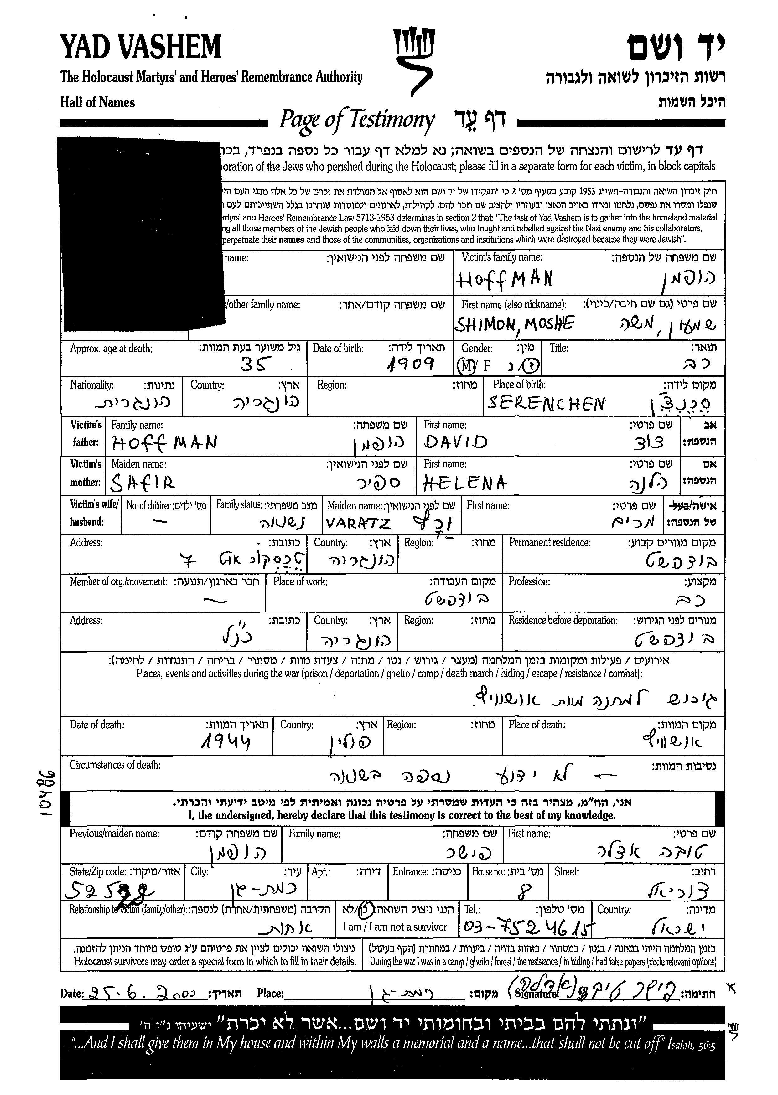 Во время Шоа: 1933-1945гг; точно или в диапазоне 2-5 лет