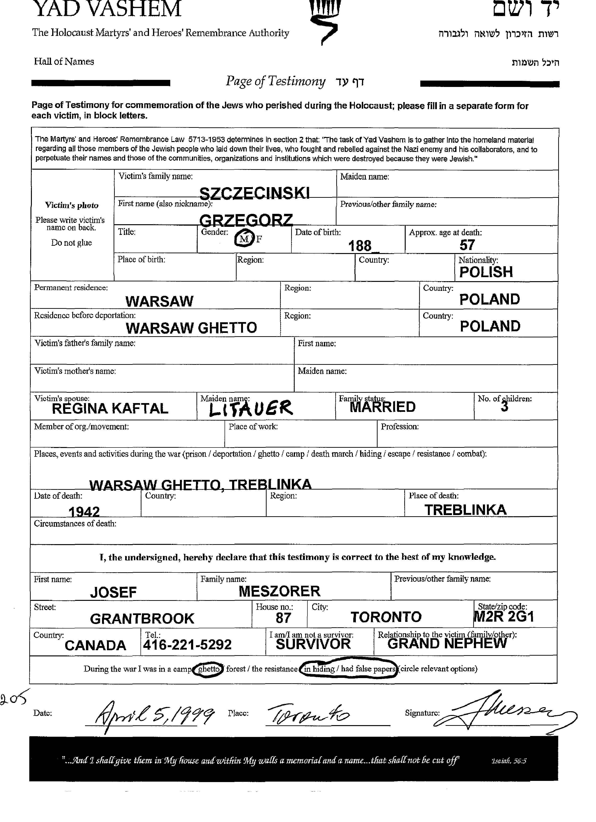 Поиск подателя Листа свидетельских показаний. Поиск по любому имени, включая уменьшительное или прозвище