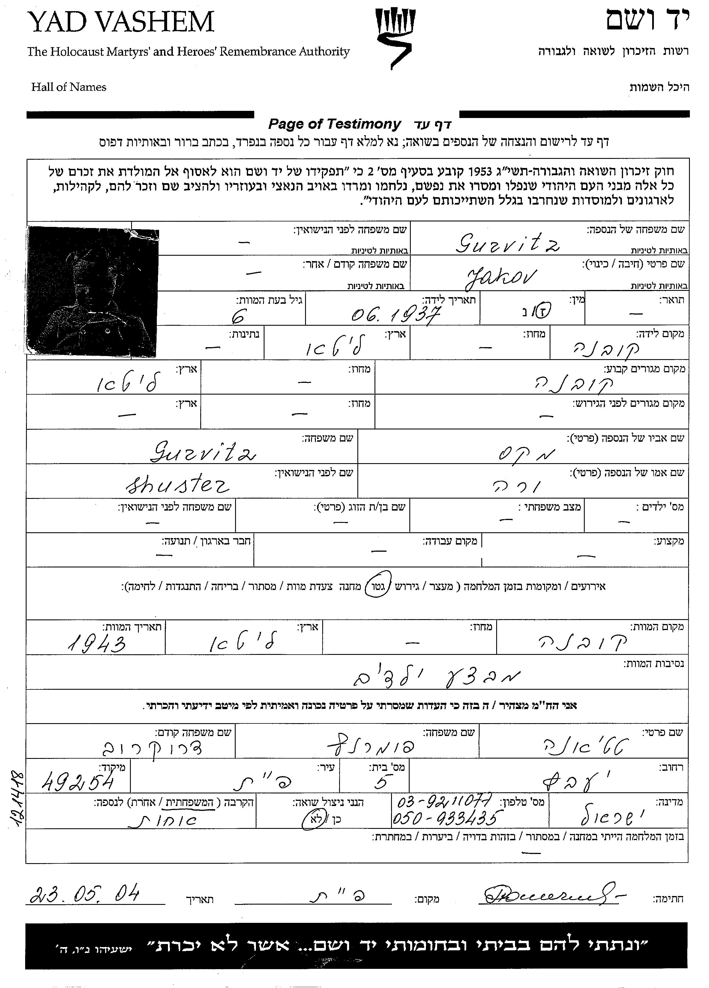 Яд Вашем - Листы свидетельских показаний Мемориального фонда