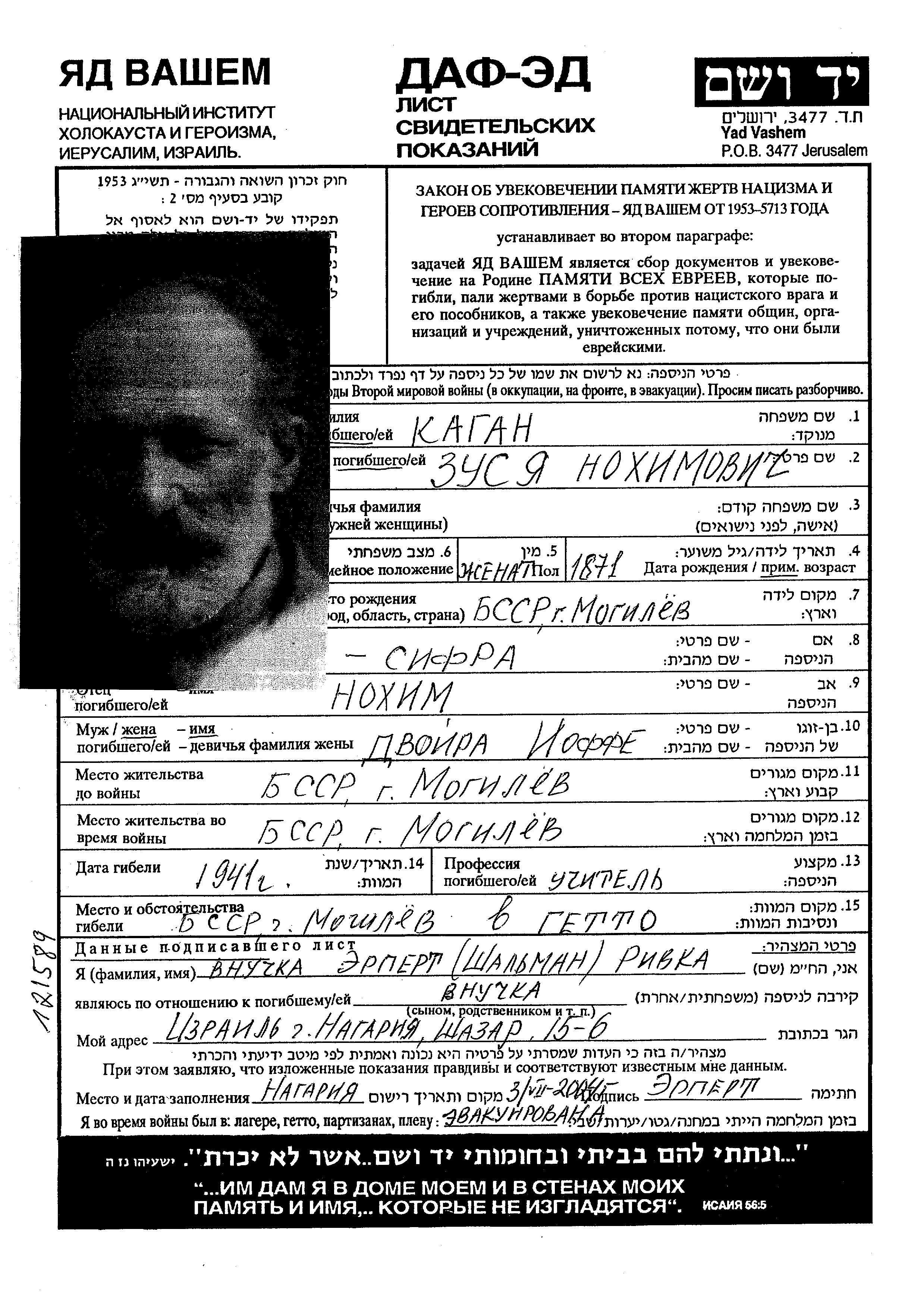 Поиск подателя Листа свидетельских показаний. Поиск по любому имени, включая уменьшительное или прозвище