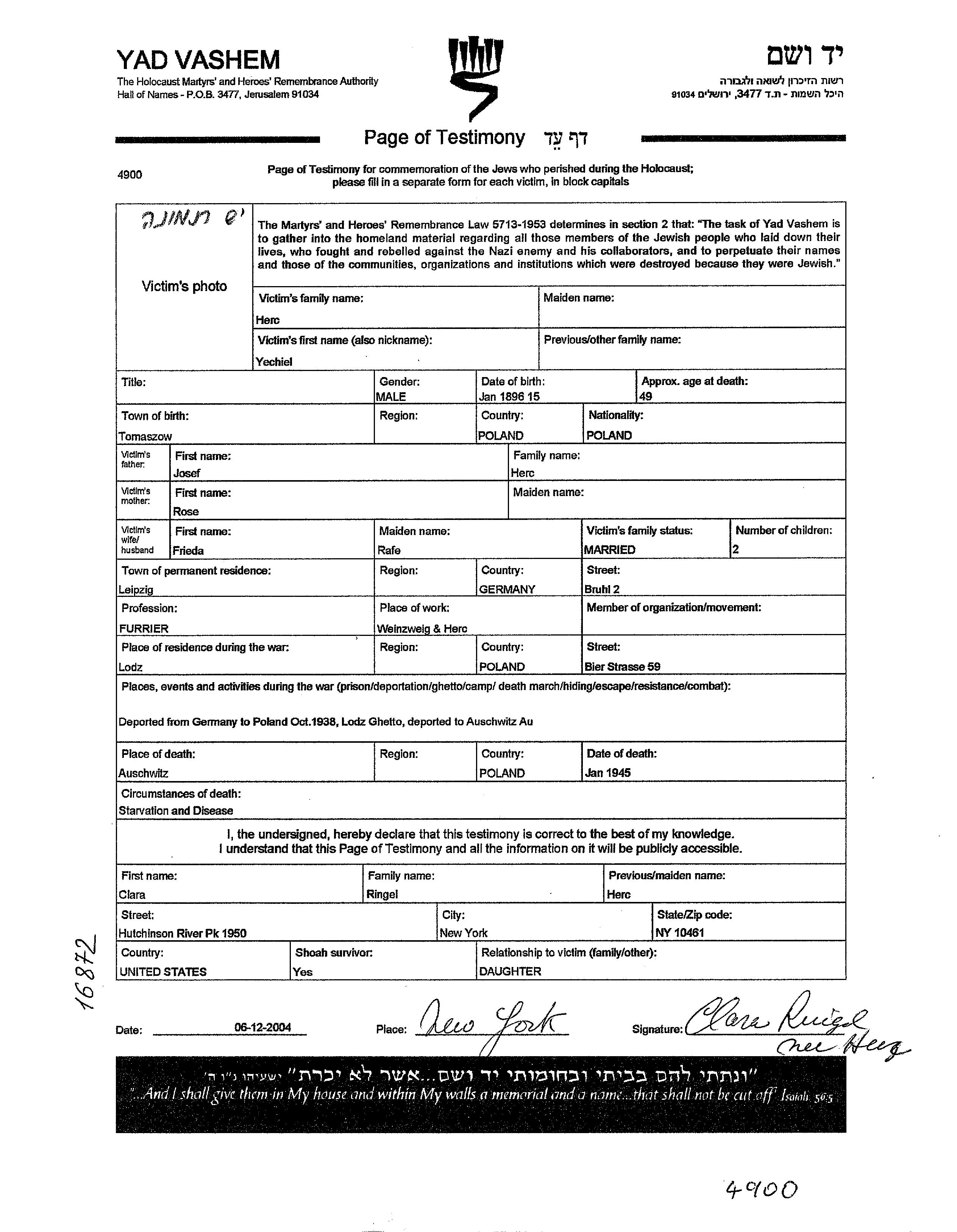 Херц | Иехиэль | 1896 | Лейпциг-Конневиц, Германия | Лист свидетельских показаний (электронный, с подписью) |