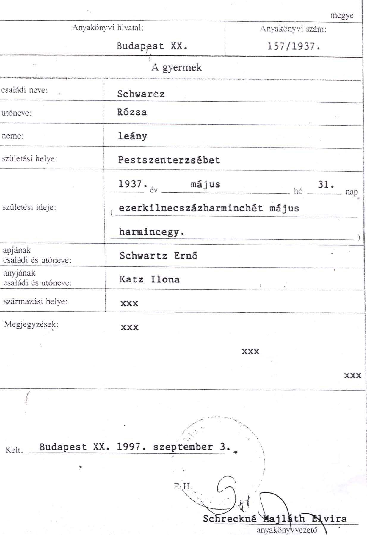 Рожа Шварц, место рождения: Пештсентержебет, Венгрия. Место жительства до войны: Пештсентержебет, Венгрия.