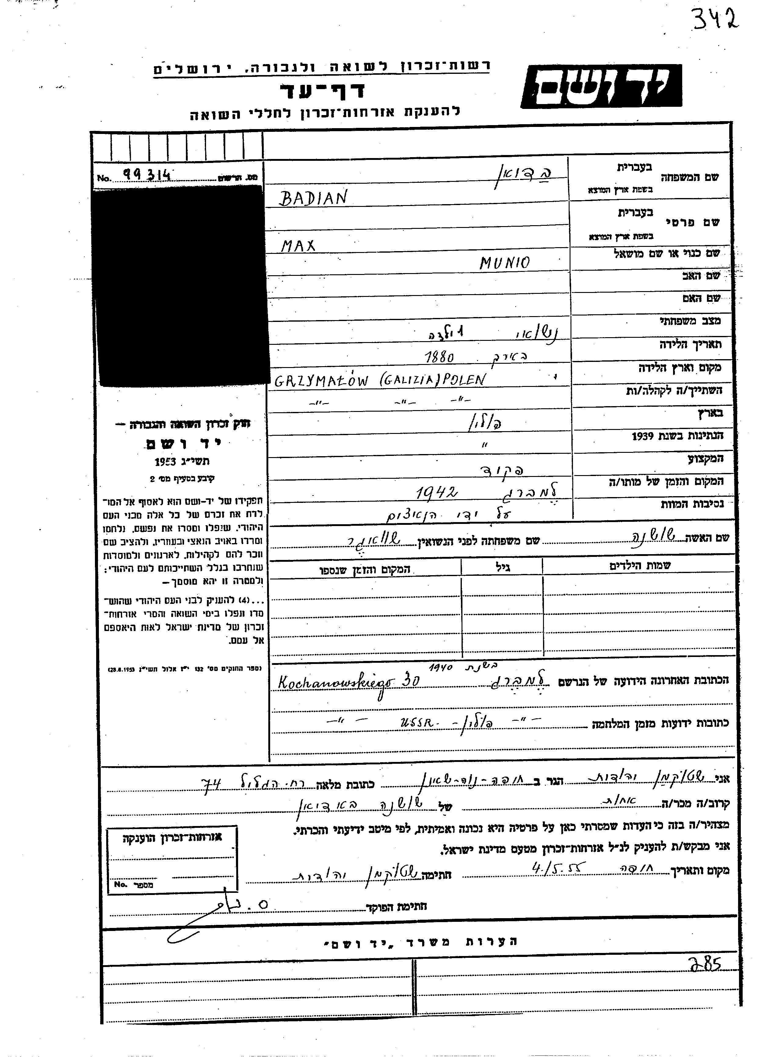 Бадиан | Макс Муньо | 1880 | Гжималов, Польша | Лист свидетельских показаний |