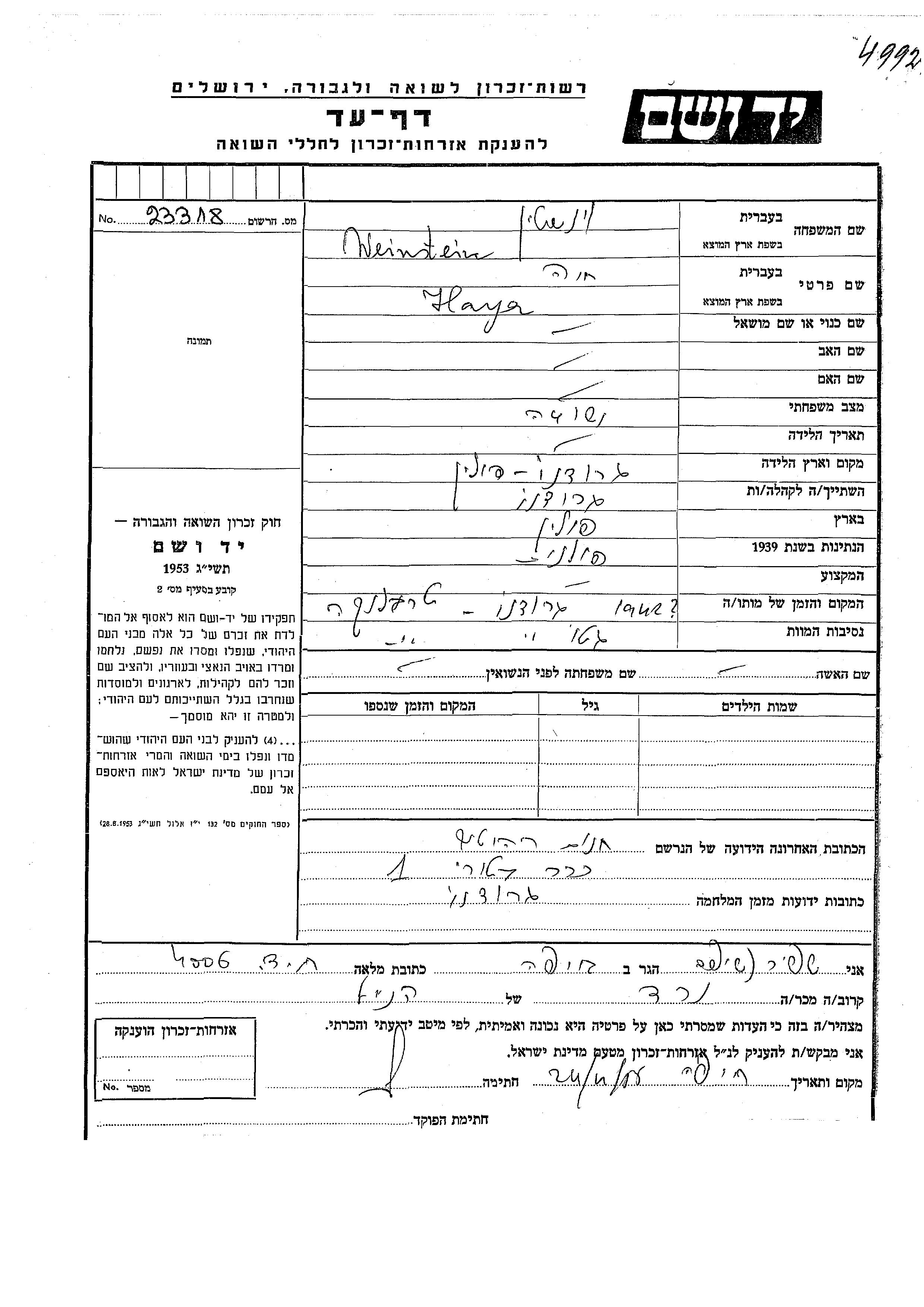 Яд Вашем - Листы свидетельских показаний Мемориального фонда