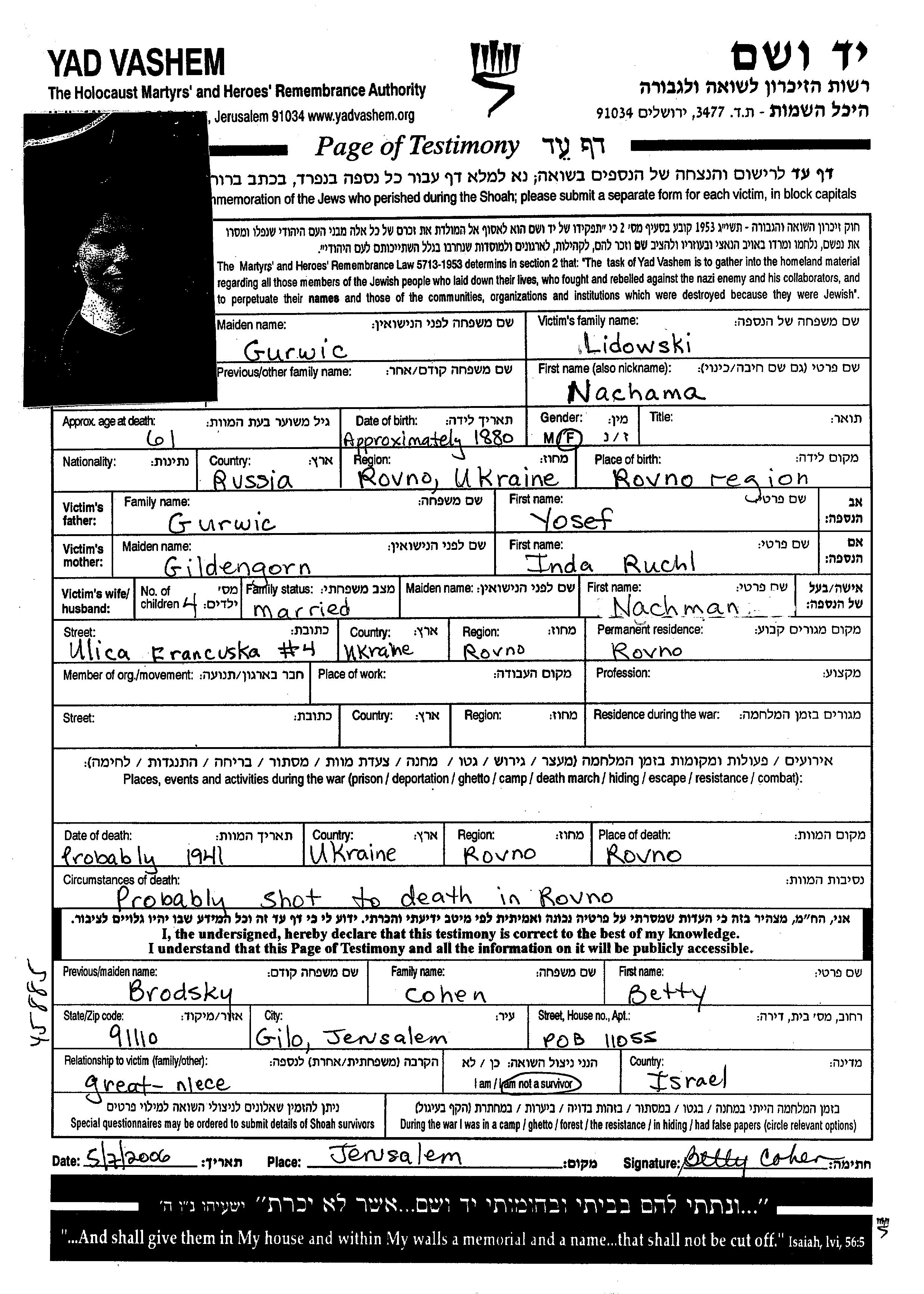 Лидовски | Нахама | 1880 | Ровно, Польша | Лист свидетельских показаний |
