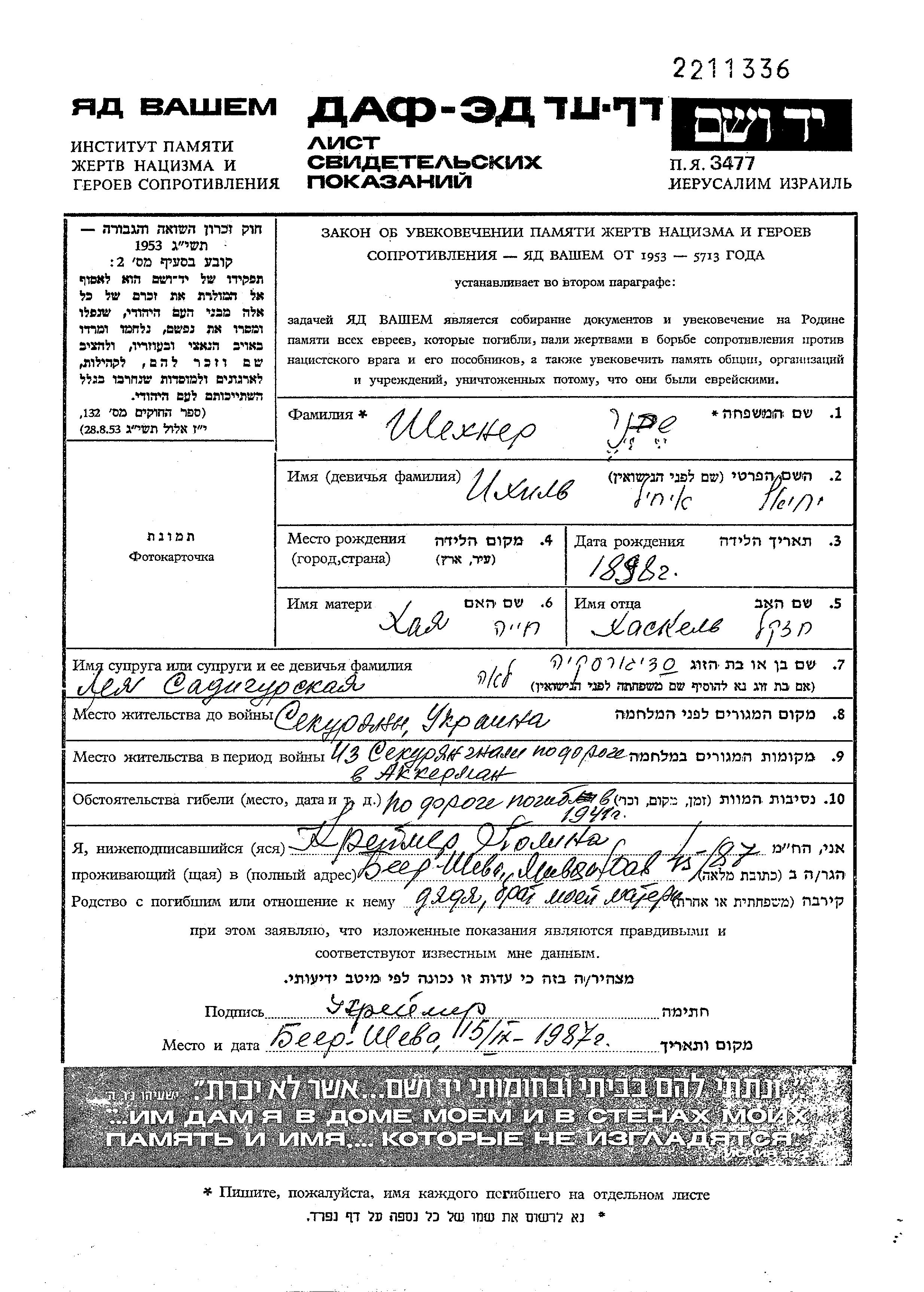 Яд Вашем - Листы свидетельских показаний Мемориального фонда