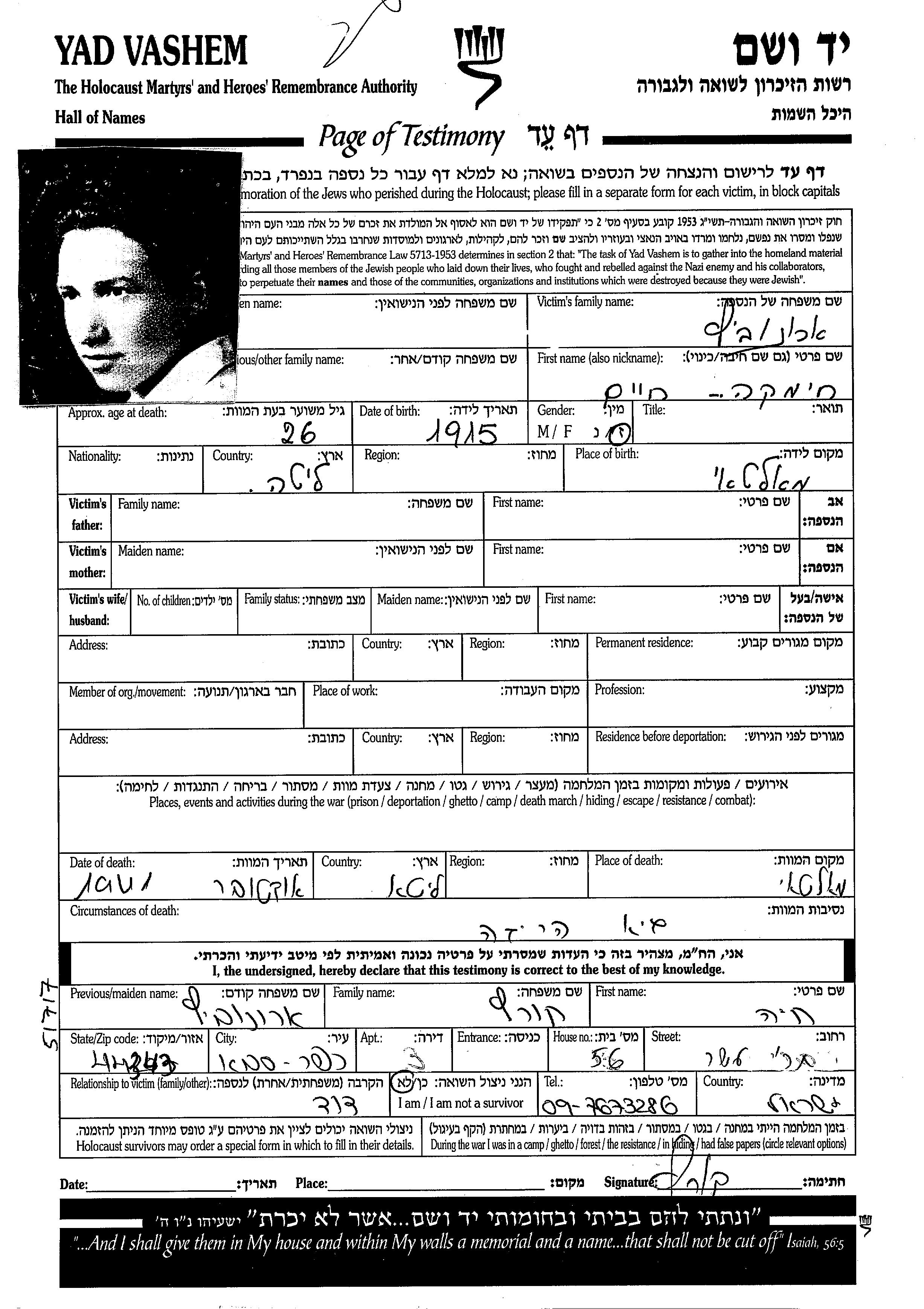 Яд Вашем - Листы свидетельских показаний Мемориального фонда