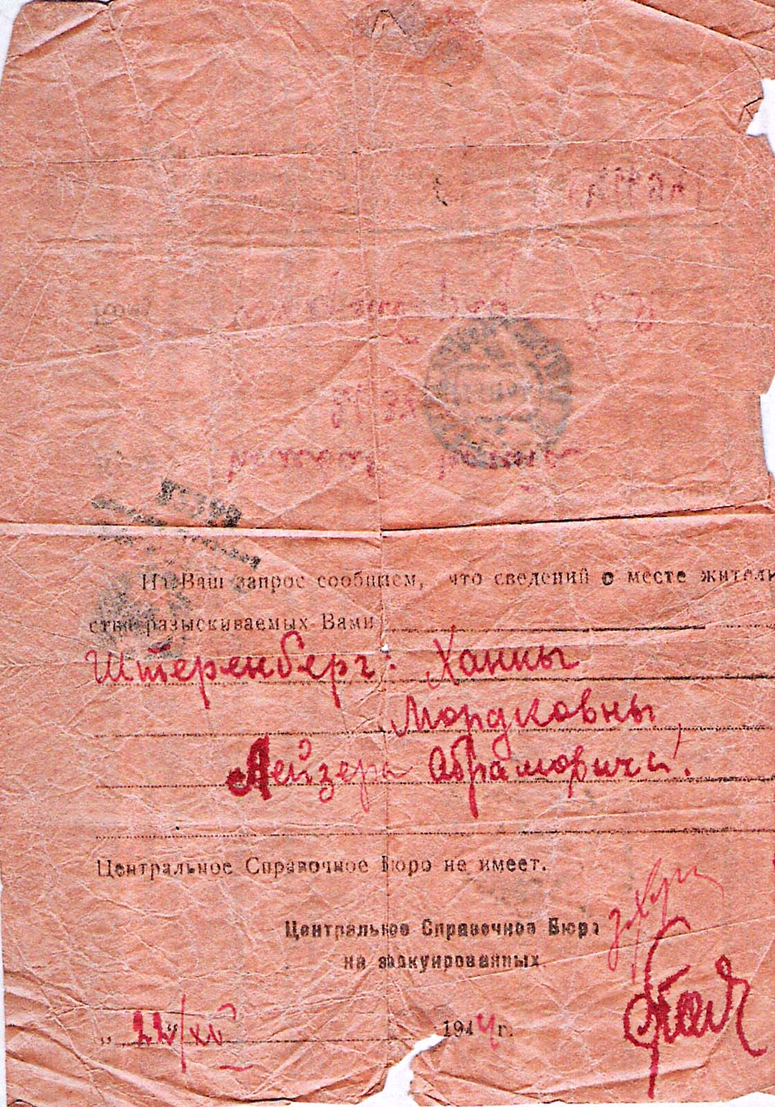 Ханна Штеренберг, место рождения: Украина (СССР). Место жительства до войны: Житомир, Украина (СССР).